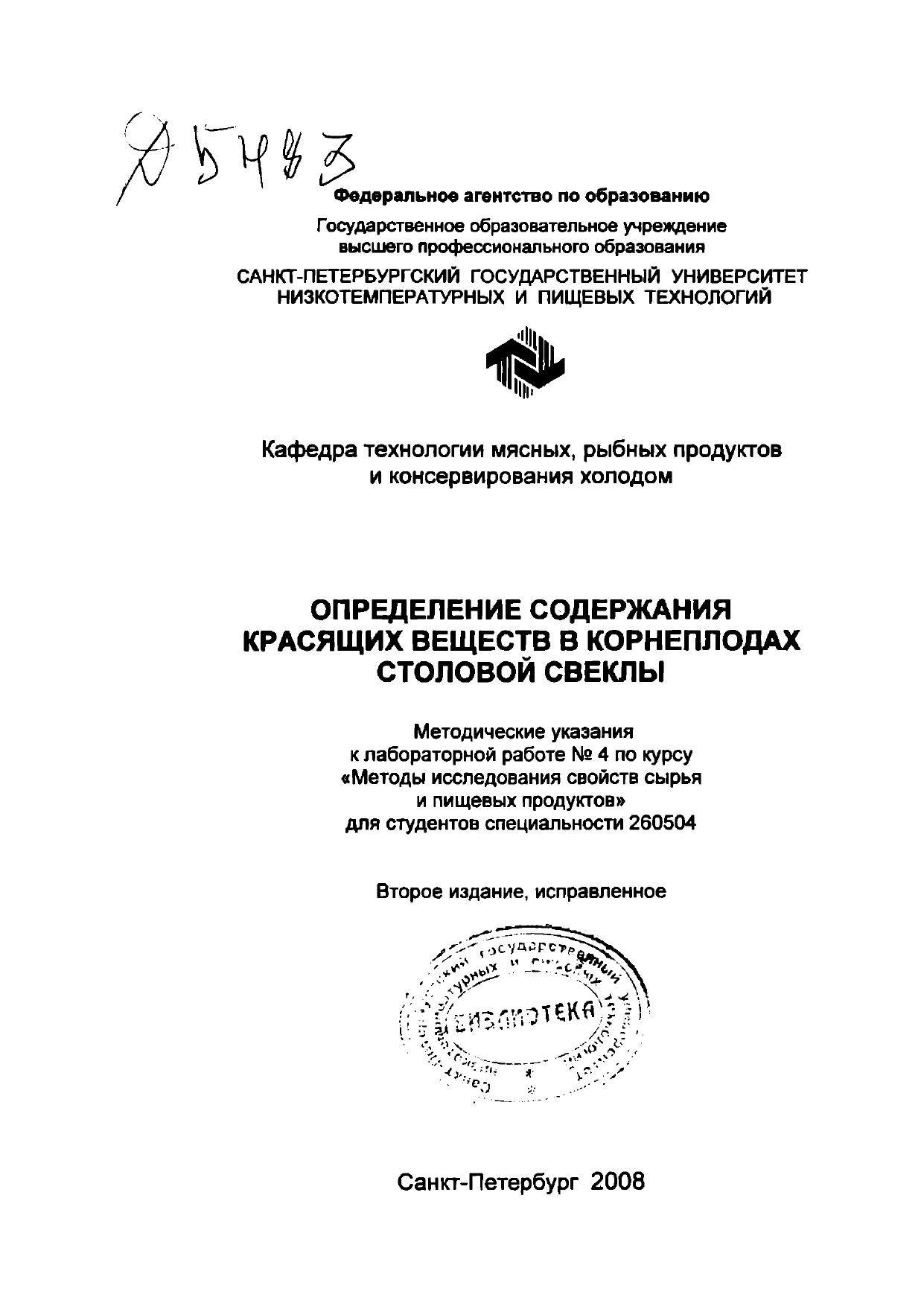 Определение содержания красящих веществ в корнеплодах столовой свеклы: Методические указания к лабораторной работе № 4 по курсу «Методы исследования свойств сырья и пищевых продуктов» для студентов спец. 260504