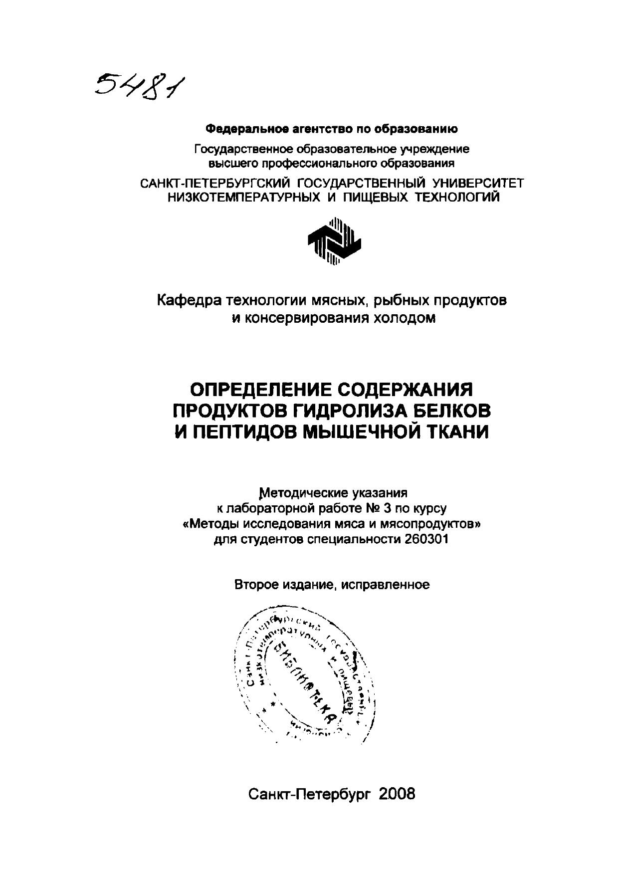 Определение содержания продуктов гидролиза белков и пептидов в мышечной ткани: Методические указания к лабораторной работе № 3 по курсу «Методы исследования мяса и мясопродуктов» для студентов спец. 260301