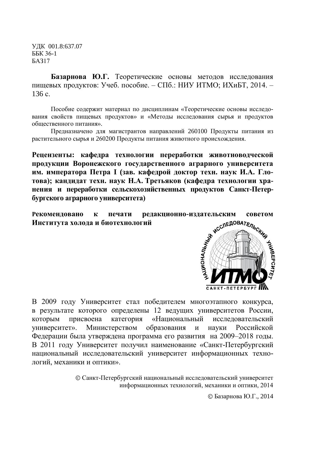 Пособие содержит материал по дисциплинам «Теоретические основы исследования свойств пищевых продуктов» и «Методы исследования сырья и продуктов общественного питания». Предназначено для магистрантов направлений 260100 Продукты питания из растительного сырья и 260200 Продукты питания животного происхождения.