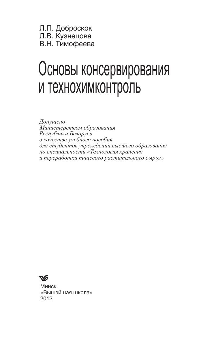 Основы консервирования и технохимконтроль