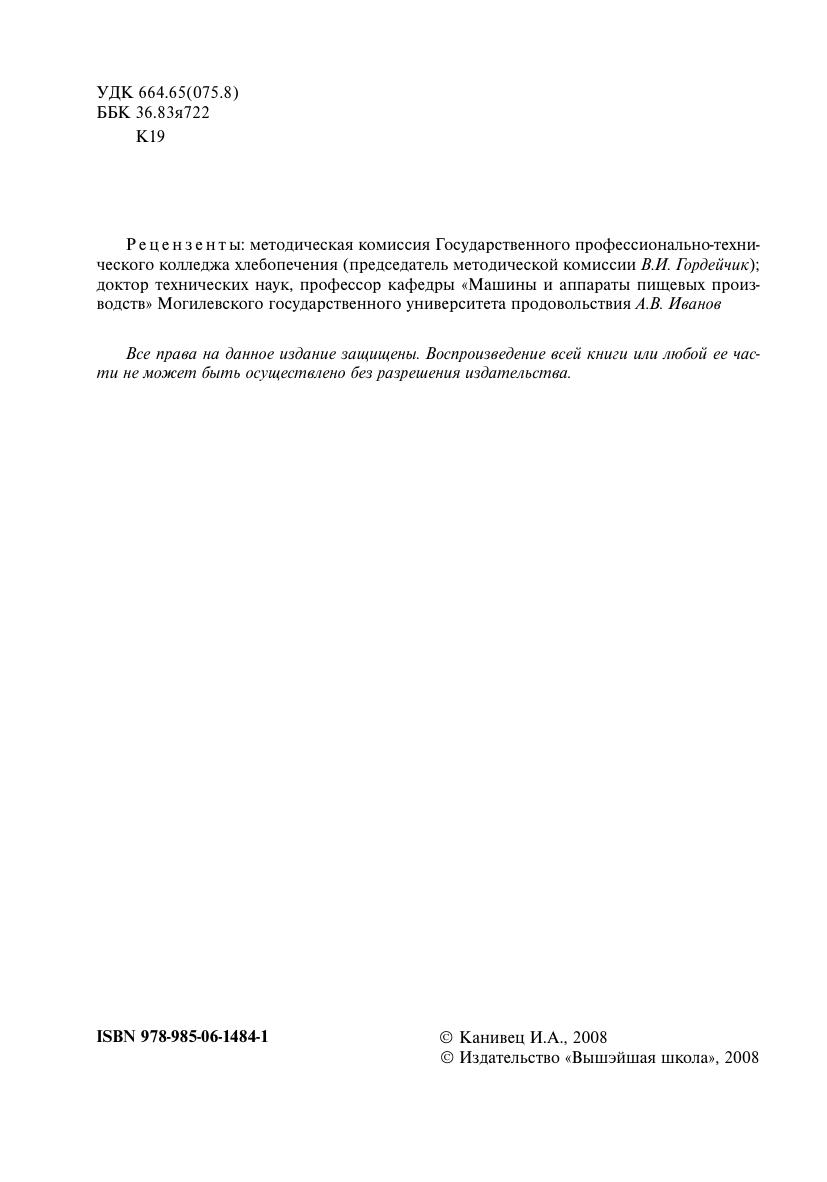 Раскрываются теоретические основы охраны труда и безопасности производства на предприятиях хлебопекарной отрасли. Описываются технологическая схема приготовления теста ассортимент хлебобулочных изделий разделка теста для различных сортов хлебобулочных изделий, расстройка тестовых заготовок назначение и устройство тесторазделочного, тестоформующего и расстройного оборудования. Для учащихся ПТУ по специальности "Технология хлебопекарного производства".