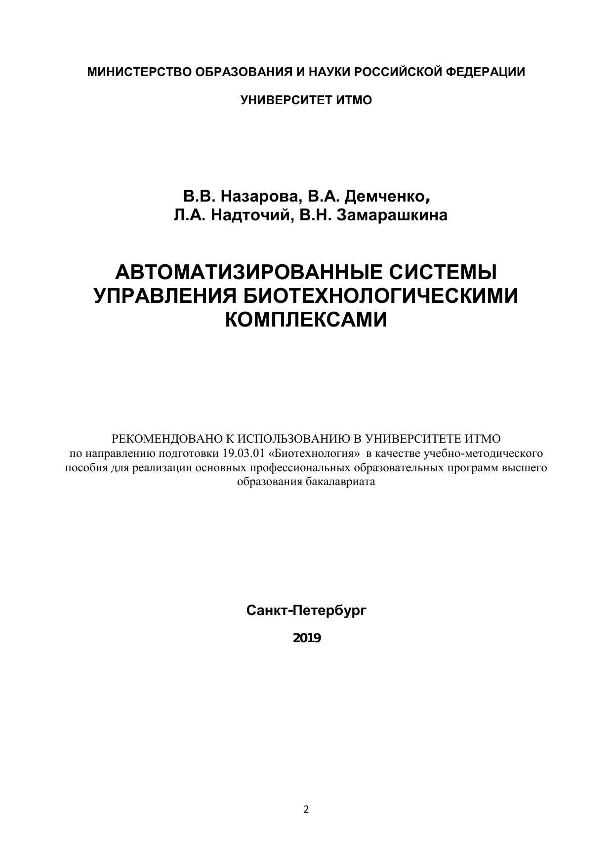 Автоматизированные системы управления биотехнологическими комплексами