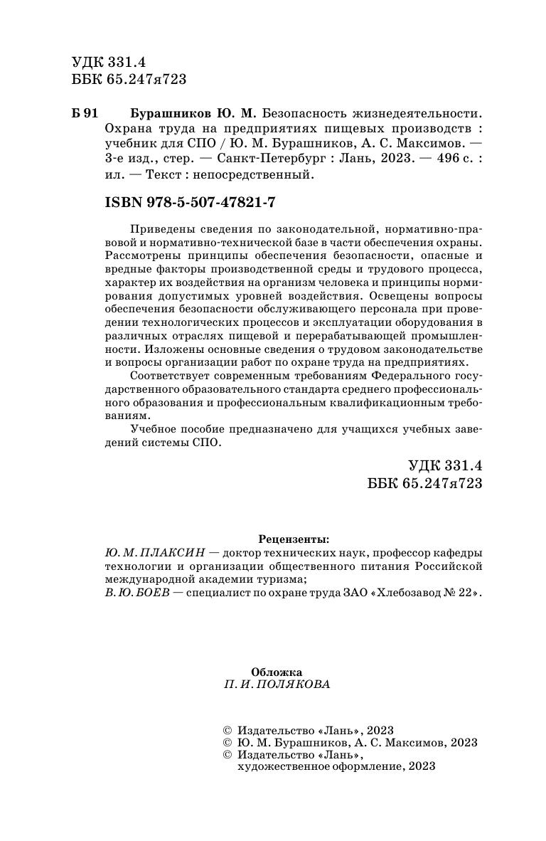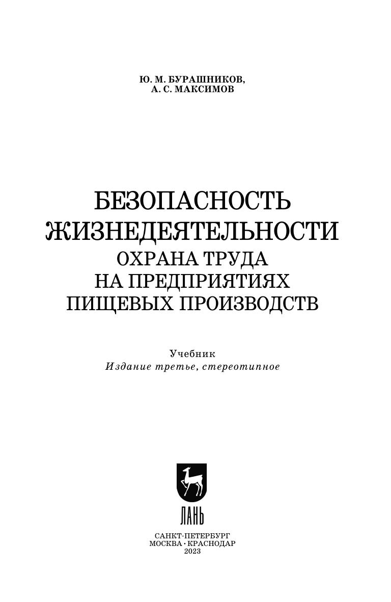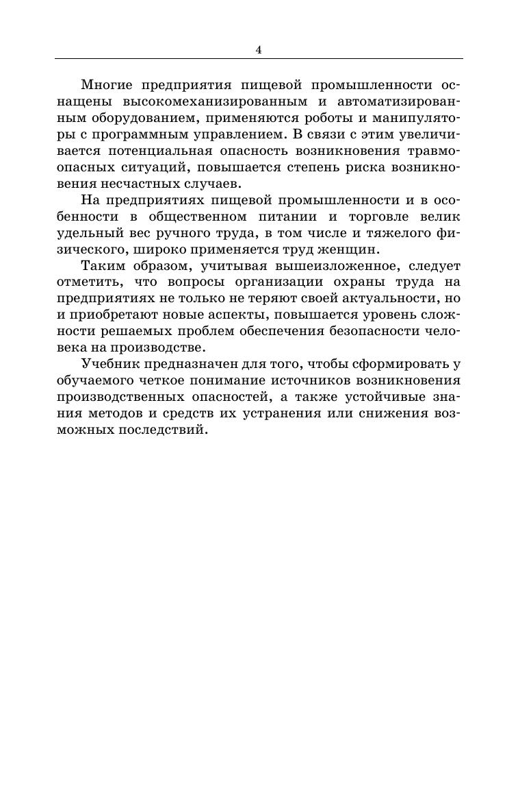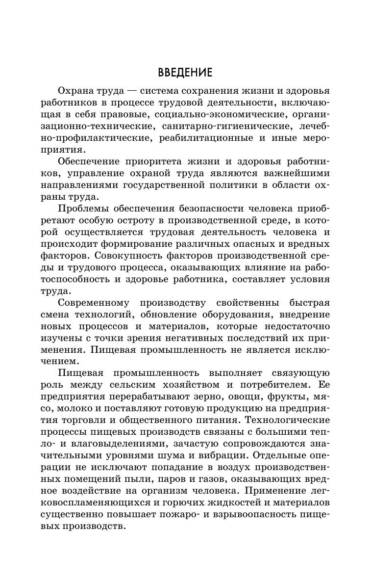 Приведены сведения по законодательной, нормативно-правовой и нормативно-технической базе в части обеспечения охраны. Рассмотрены принципы обеспечения безопасности, опасные и вредные факторы производственной среды и трудового процесса, характер их воздействия на организм человека и принципы нормирования допустимых уровней воздействия. Освещены вопросы обеспечения безопасности обслуживающего персонала при проведении технологических процессов и эксплуатации оборудования в различных отраслях пищевой и перерабатывающей промышленности. Изложены основные сведения о трудовом законодательстве и вопросы организации работ по охране труда на предприятиях. Соответствует современным требованиям Федерального государственного образовательного стандарта среднего профессионального образования и профессиональным квалификационным требованиям. Учебное пособие предназначено для учащихся учебных заведений системы СПО.