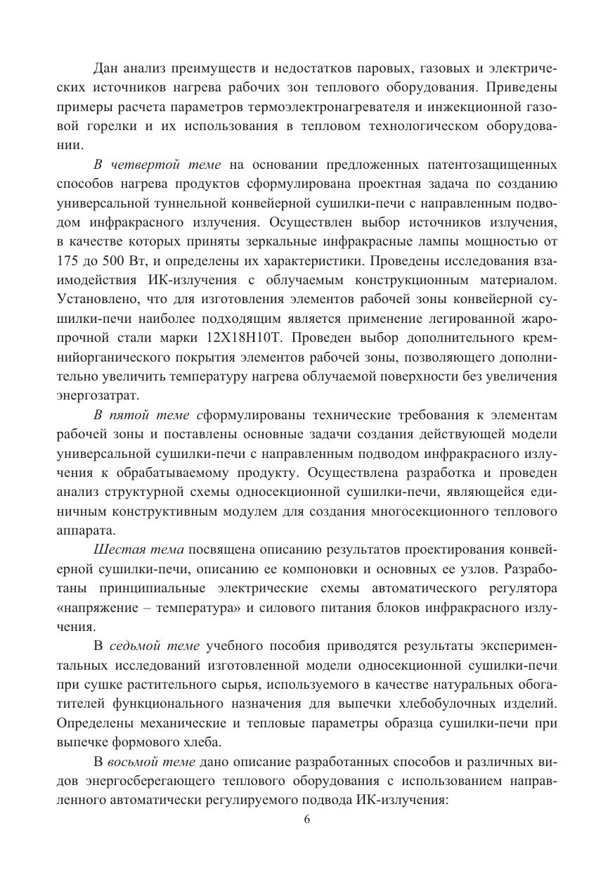 Приведены результаты конструкторских разработок и экспериментальных исследований по созданию новых энергосберегающих способов и оборудования для тепловой обработки пищевых продуктов с использованием направленного подвода инфракрасного излучения. Проведен анализ недостатков используемого в промышленности сушильного и пекарного оборудования. Сформулированы предложения по устранению этих недостатков путем применения направленного излучения от инфракрасных зеркальных ламп. Разработаны функциональная и структурная схемы действующей модели сушилки-печи с инфракрасными ламповыми нагревателями, и на основе закономерностей теплообмена спроектированы элементы её конструкции. Проведен сравнительный анализ эффективности ламповых излучателей и широко применяемых в тепловых установках трубчатых термоэлектронагревателей.