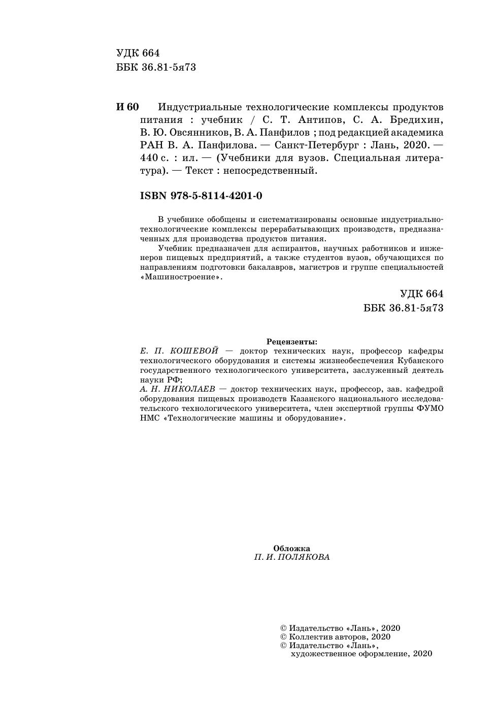 Учебник предназначен для аспирантов, научных работников и инженеров пищевых предприятий, а также студентов вузов, обучающихся по направлениям подготовки бакалавров, магистров и группе специальностей «Машиностроение».