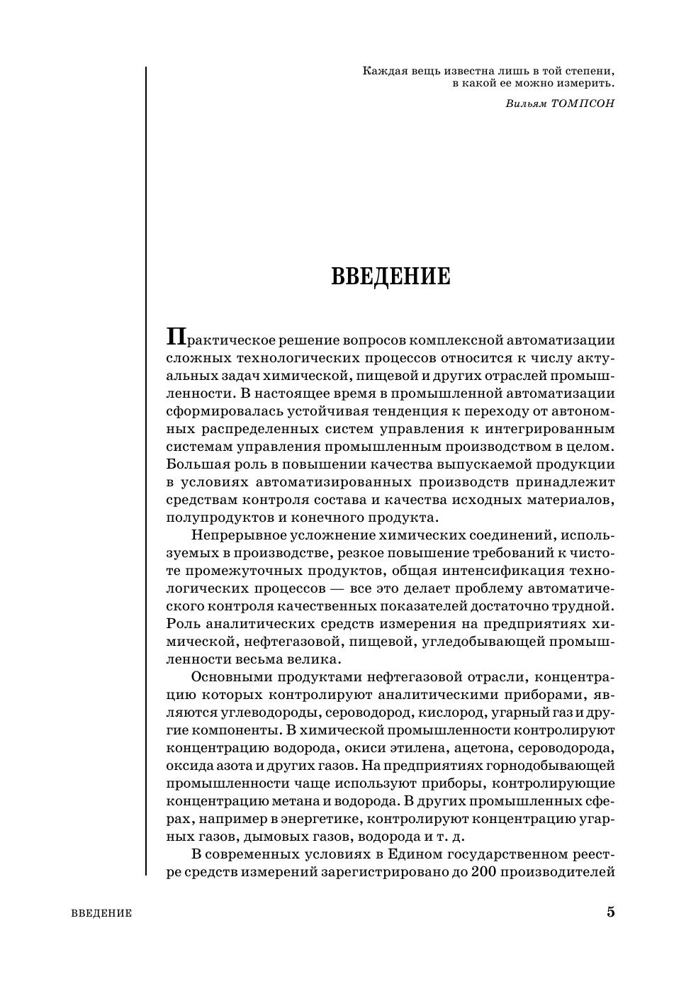 В книге дается описание методов измерения и автоматических приборов, предназначенных для анализа состава и качества технологических газов и растворов. Кроме этого, излагаются физические основы, принципы действия и некоторые конструкции приборов, а также основные справочные материалы, необходимые для выполнения курсовых и дипломных проектов. Книга подготовлена в соответствии с учебной программой курса «Технологические измерения и приборы» и предназначена в качестве пособия для студентов очного, заочного и вечернего отделений по направлению «Автоматизация и управление», профилю «Автоматизация технологических процессов и производств» (для химических и пищевых производств).