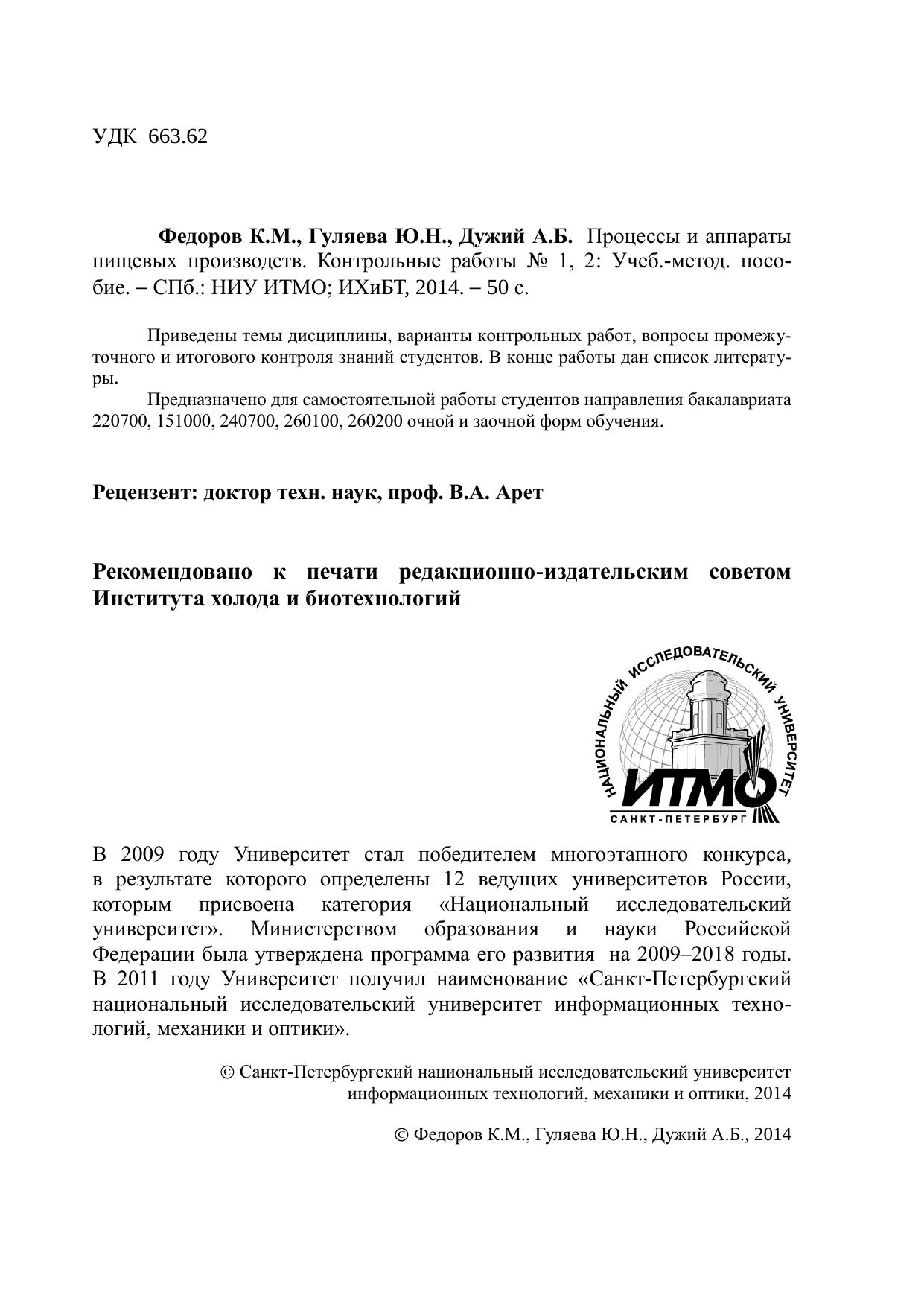 Процессы и аппараты пищевых производств. Контрольные работы № 1, 2