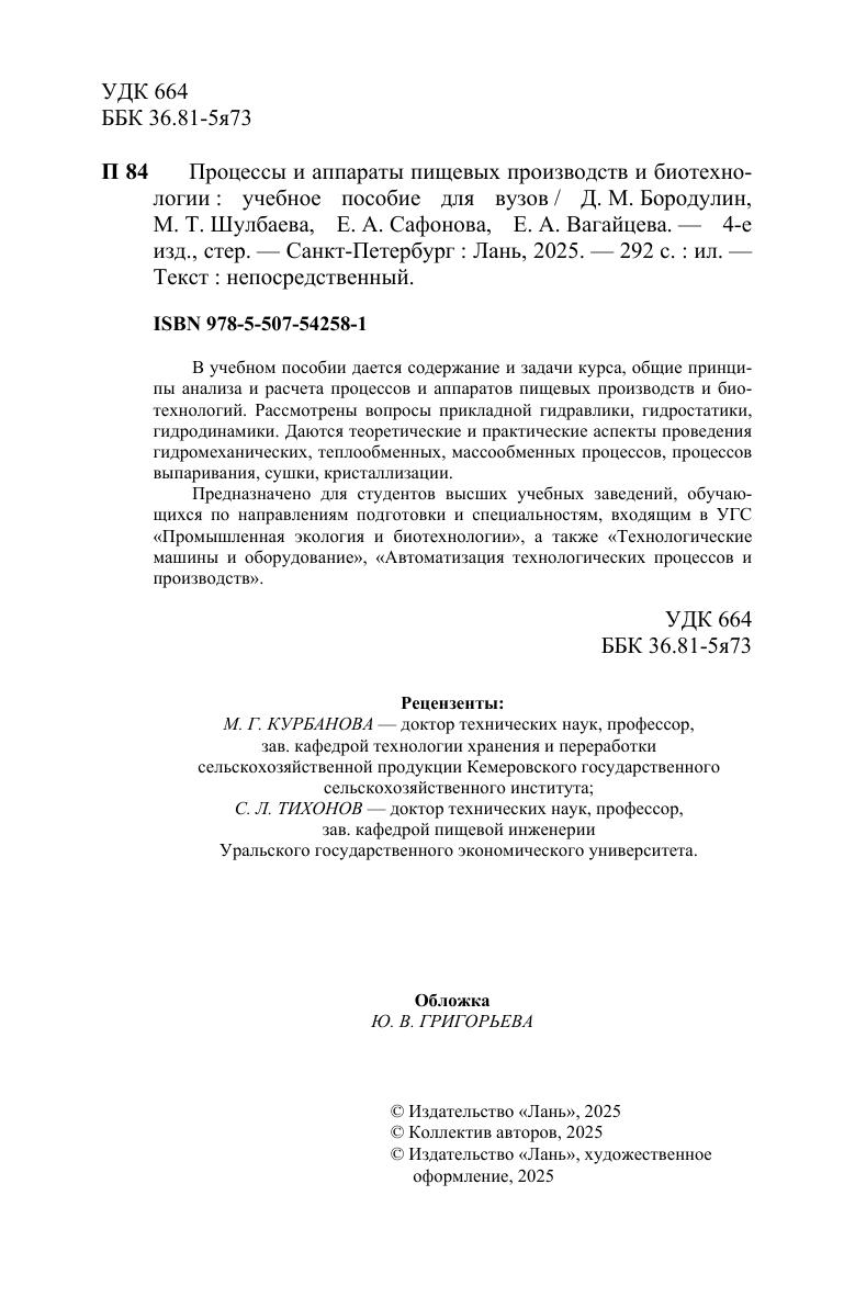 В учебном пособии дается содержание и задачи курса, общие принципы анализа и расчета процессов и аппаратов пищевых производств и биотехнологий. Рассмотрены вопросы прикладной гидравлики, гидростатики, гидродинамики. Даются теоретические и практические аспекты проведения гидромеханических, теплообменных, массообменных процессов, процессов выпаривания, сушки, кристаллизации. Предназначено для студентов высших учебных заведений, обучающихся по направлениям подготовки и специальностям, входящим в УГС «Промышленная экология и биотехнологии», а также «Технологические машины и оборудование», «Автоматизация технологических процессов и производств».