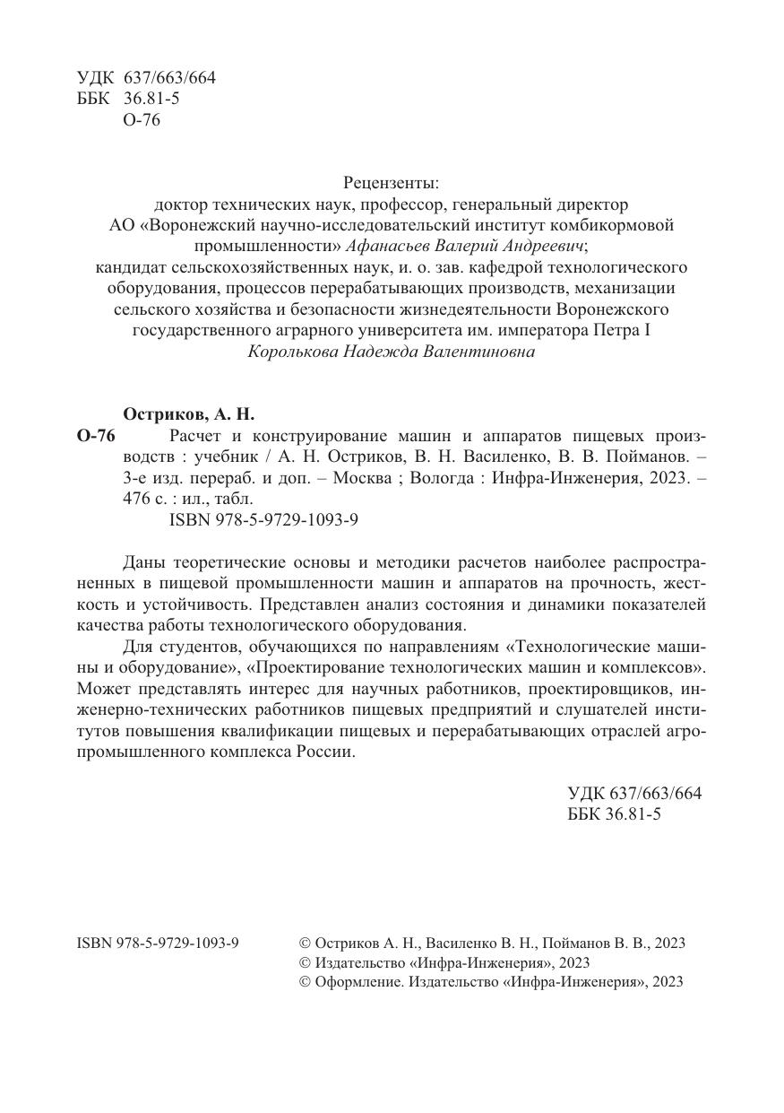 Для студентов, обучающихся по направлениям «Технологические машины и оборудование», «Проектирование технологических машин и комплексов». Может представлять интерес для научных работников, проектировщиков, инженерно-технических работников пищевых предприятий и слушателей институтов повышения квалификации пищевых и перерабатывающих отраслей агропромышленного комплекса России.