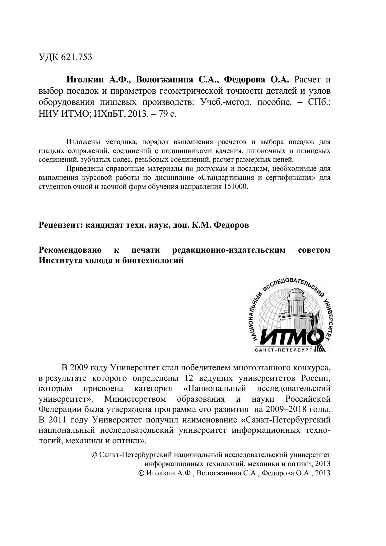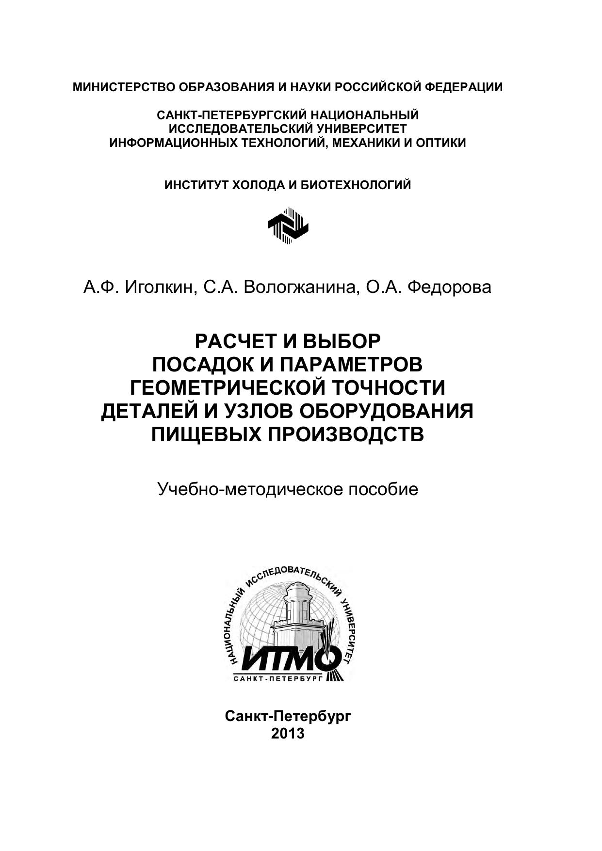Расчет и выбор посадок и параметров геометрической точности деталей и узлов оборудования пищевых производств