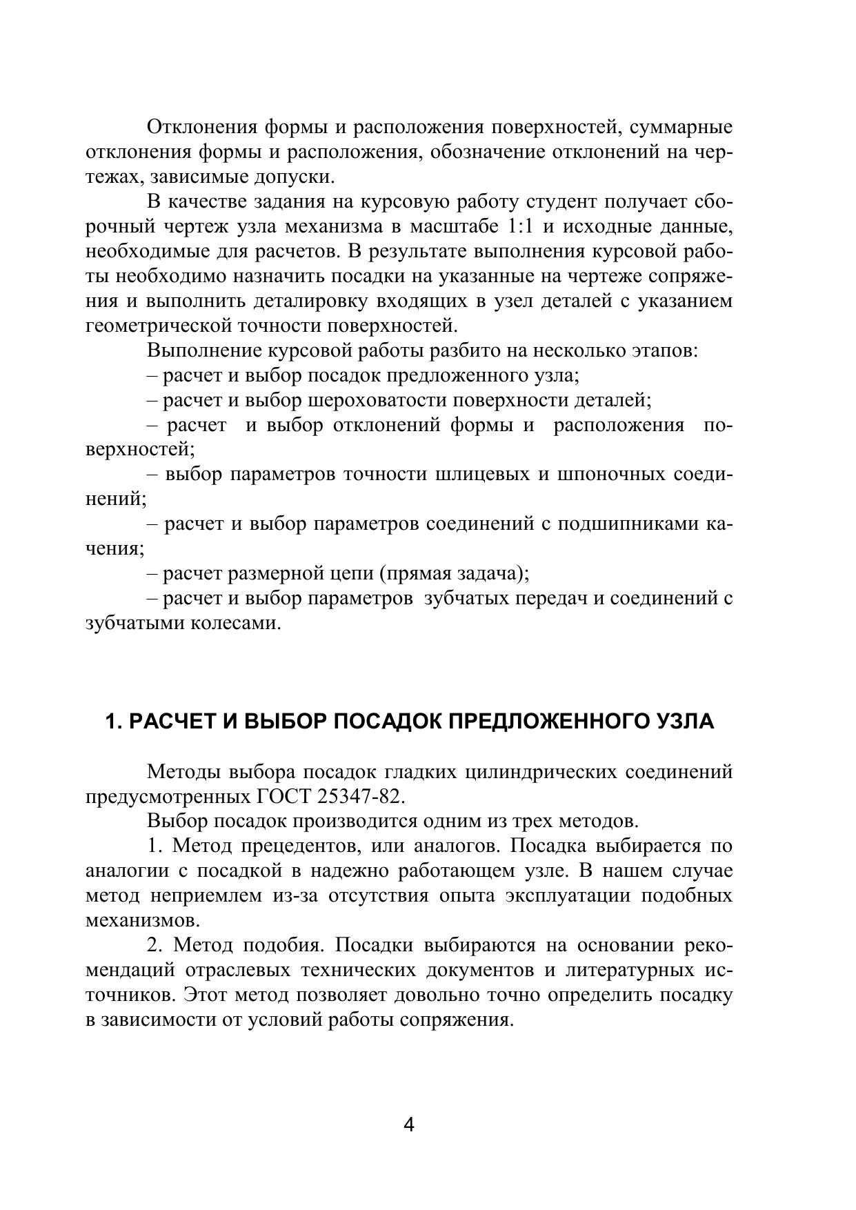 Изложены методика, порядок выполнения расчетов и выбора посадок для гладких сопряжений, соединений с подшипниками качения, шпоночных и шлицевых соединений, зубчатых колес, резьбовых соединений, расчет размерных цепей. Приведены справочные материалы по допускам и посадкам, необходимые для выполнения курсовой работы по дисциплине «Стандартизация и сертификация» для студентов очной и заочной форм обучения направления 151000.