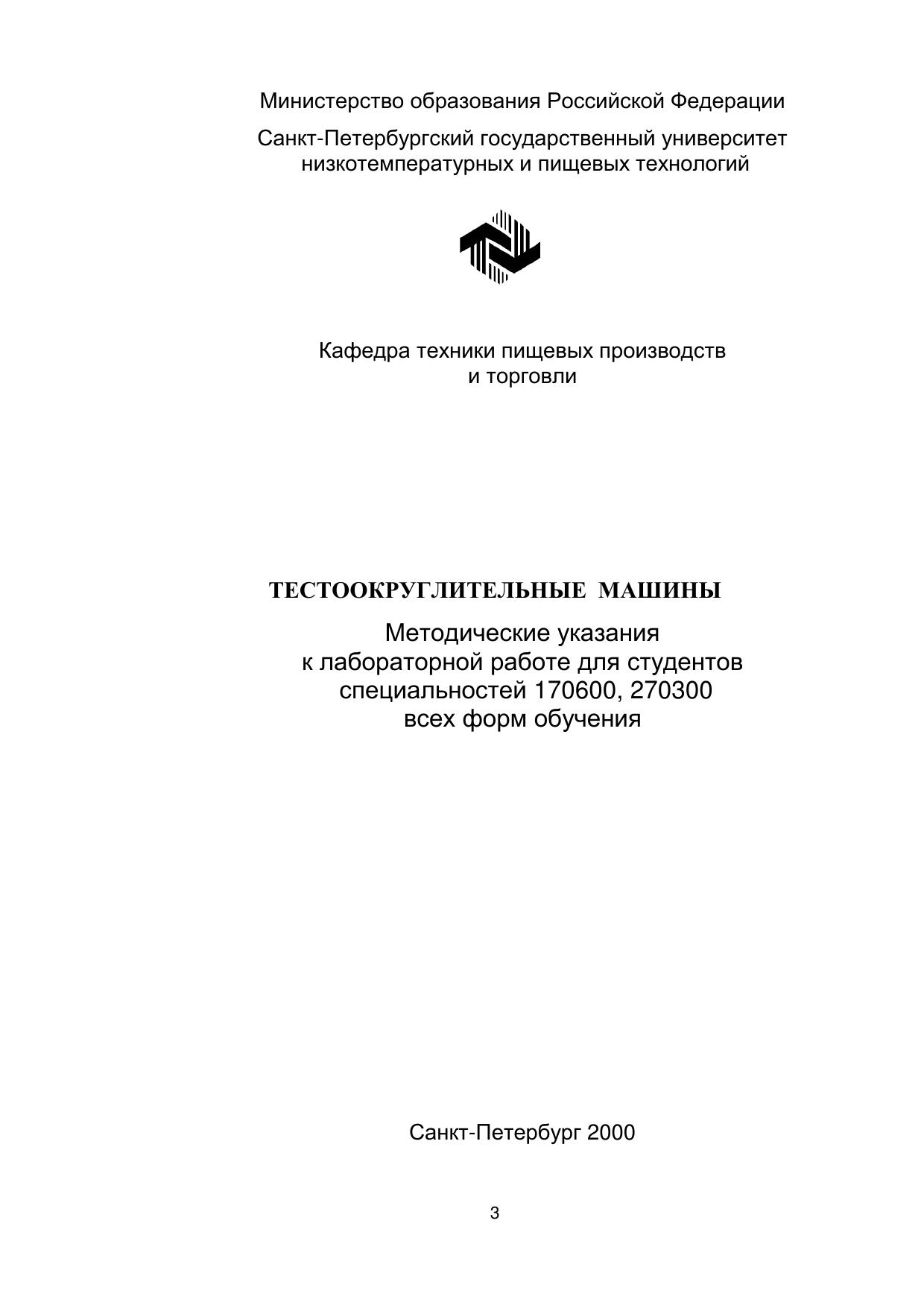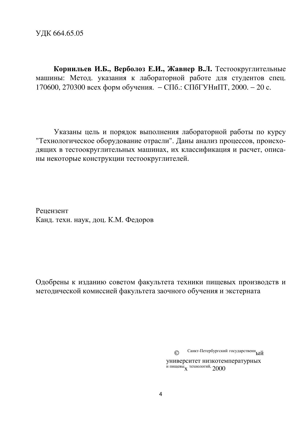 Тестоокруглительные машины: Методические указания к лабораторной работе для студентов спец. 170600, 270300 всех форм обучения
