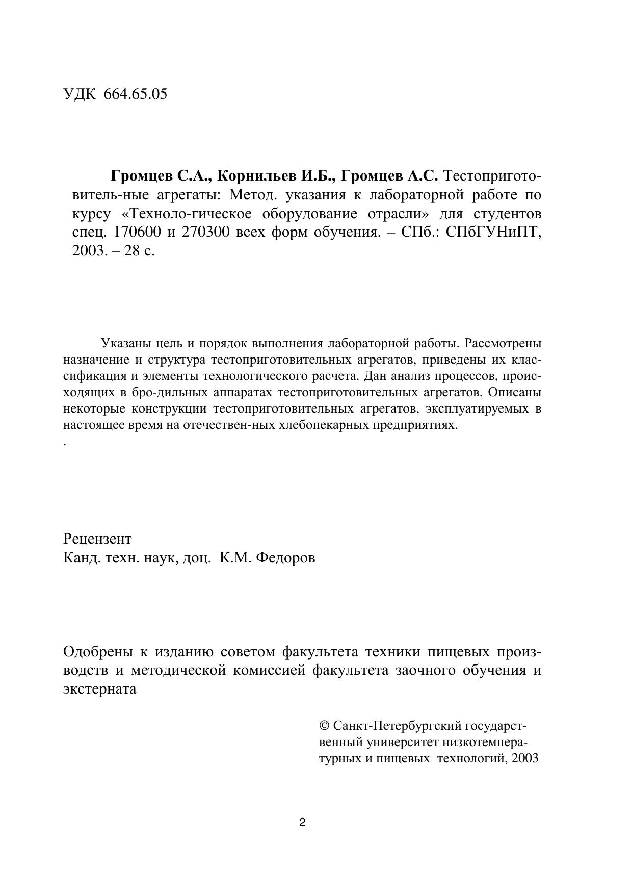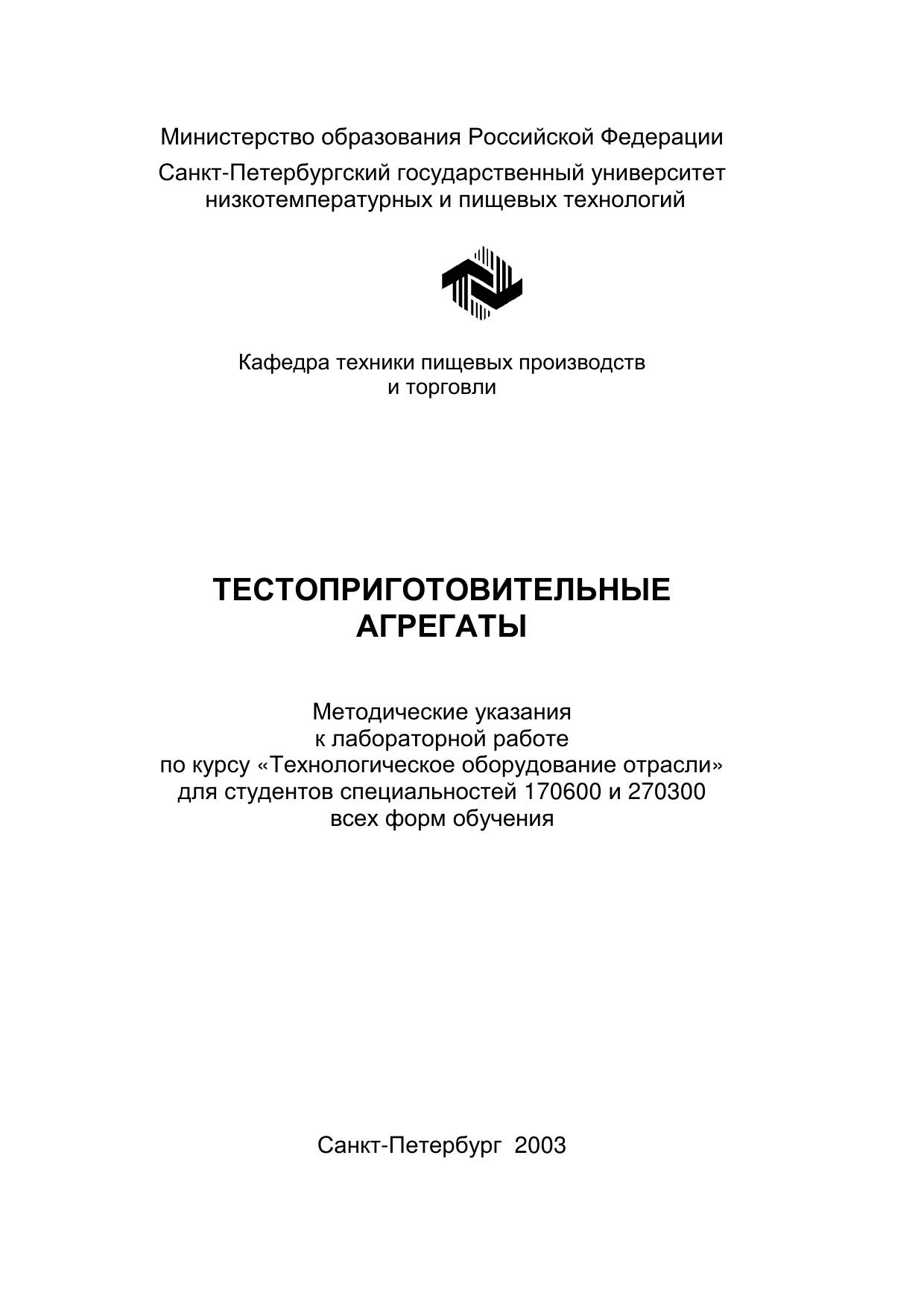 Тестоприготовительные агрегаты: Методические указания к лабораторной работе по курсу «Техноло-гическое оборудование отрасли» для студентов спец. 170600 и 270300 всех форм обучения