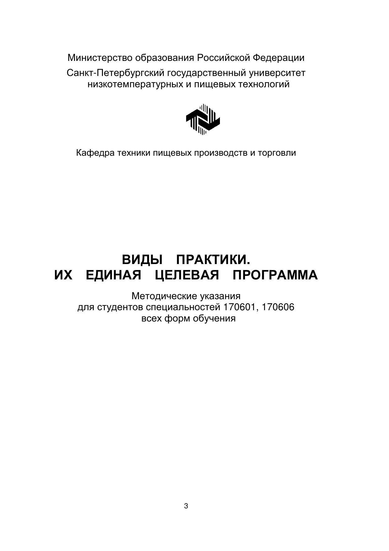 Виды практики. Их единая целевая программа: Методические указания для студентов спец. 170601, 170606 всех форм обучения