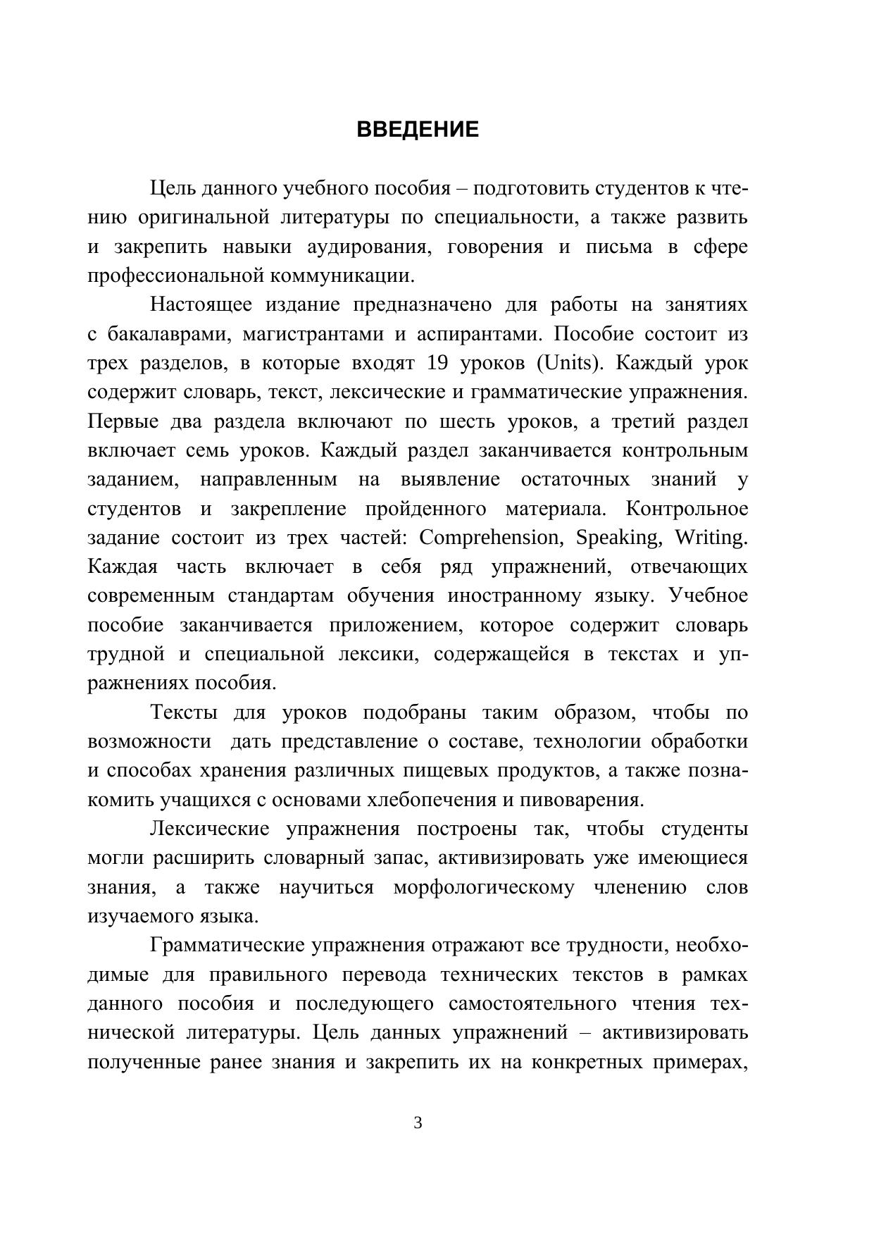 Предназначено для бакалавров по направлениям 19.03.01, Биотехнология, 19.03.02 Продукты питания из растительного сырья и 19.03.03 Продукты питания животного происхождения по дисциплине «Иностранный язык» и магистрантов по направлениям 19.04.01 Биотехнология, 19.04.02 Продукты питания из растительного сырья и 19.04.03 Продукты питания животного происхождения по дисциплине «Практический курс профессионально ориентированного перевода» очной формы обучения.