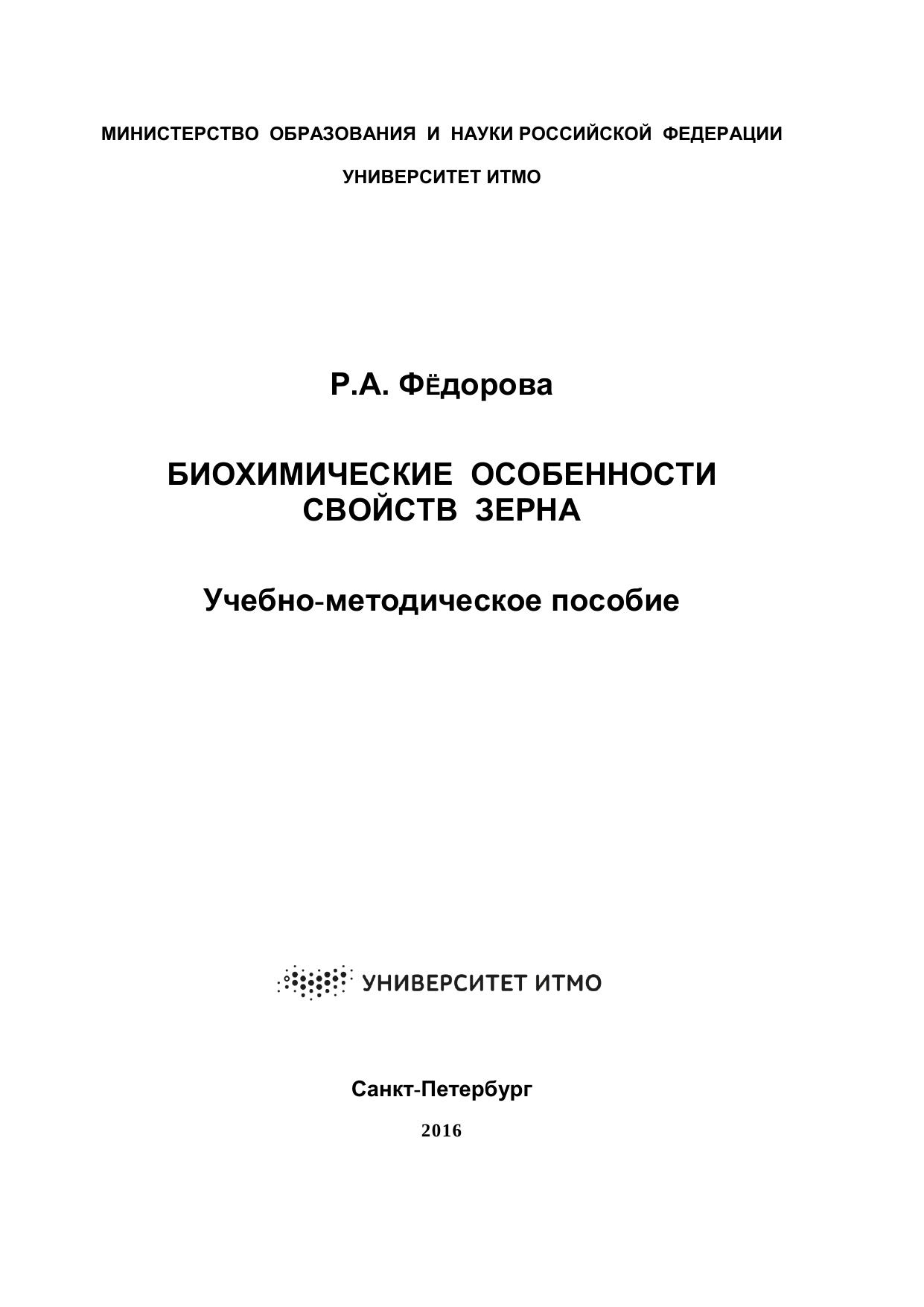 Биохимические особенности свойств зерна: учебно-методическое пособие