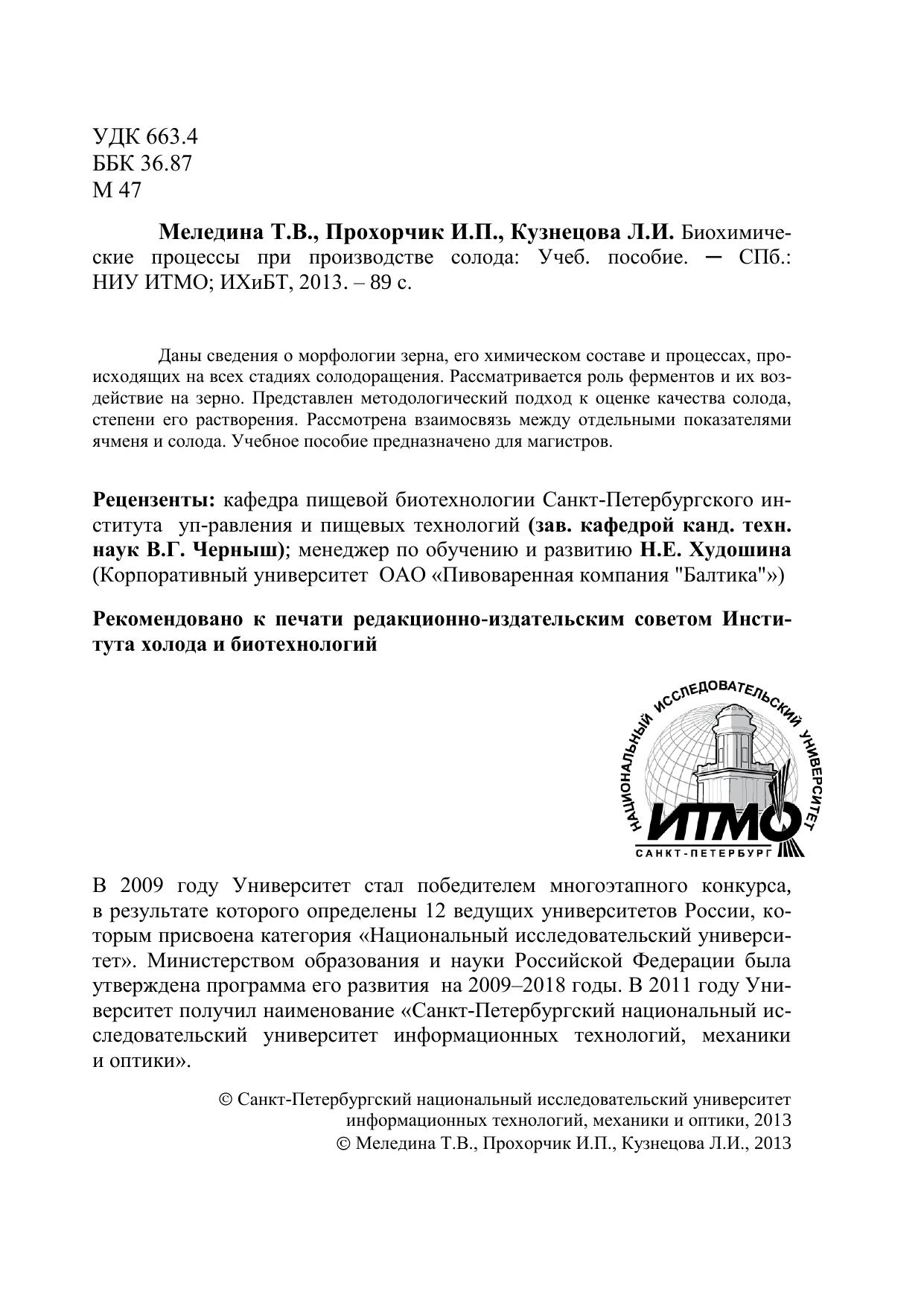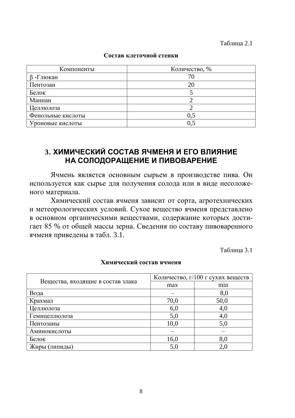 Даны сведения о морфологии зерна, его химическом составе и процессах, происходящих на всех стадиях солодоращения. Рассматривается роль ферментов и их воздействие на зерно. Представлен методологический подход к оценке качества солода,степени его растворения. Рассмотрена взаимосвязь между отдельными показателями ячменя и солода. Учебное пособие предназначено для магистров.