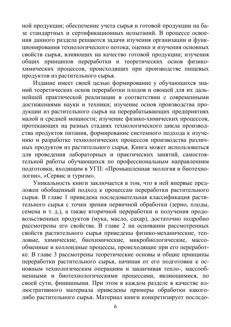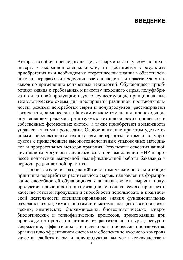 Учебное пособие предназначено для формирования знаний теоретических основ переработки плодов и овощей с целью их дальнейшей практической реализации в соответствии с современными достижениями науки и техники. Материал книги конкретизирует последовательные стадии переработки растительного сырья, что позволяет рассмотреть и понять принципы этих процессов в целом. Уникальность книги заключается в том, что в ней впервые предложен обобщенный подход к процессам переработки растительного сырья. Изучение основ производства пищевой продукции из растительного сырья на перерабатывающих предприятиях, физико-химических процессов, протекающих на разных стадиях технологического цикла производства продуктов питания, системный подход в изучении технологических процессов производства различных продуктов из растительного сырья позволяют сформировать у обучающихся целостную картину при постижении физико-химических основ и общих принципов переработки сырья растительного происхождения. Соответствует современным требованиям Федерального государственного образовательного стандарта среднего профессионального образования и профессиональным квалификационным требованиям. Учебное пособие предназначено для студентов СПО, обучающихся по профессиональным направлениям подготовки, входящим в УГП «Промышленная экология и биотехнологии», «Сервис и туризм», может использоваться для проведения лабораторных, практических занятий и самостоятельной работы обучающихся.