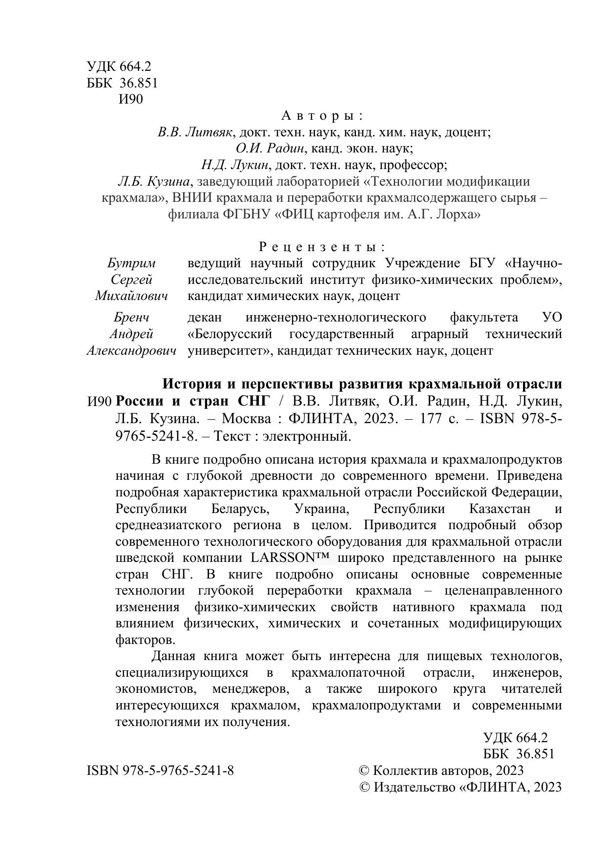 Данная книга может быть интересна для пищевых технологов, специализирующихся в крахмалопаточной отрасли, инженеров, экономистов, менеджеров, а также широкого круга читателей интересующихся крахмалом, крахмалопродуктами и современными технологиями их получения.