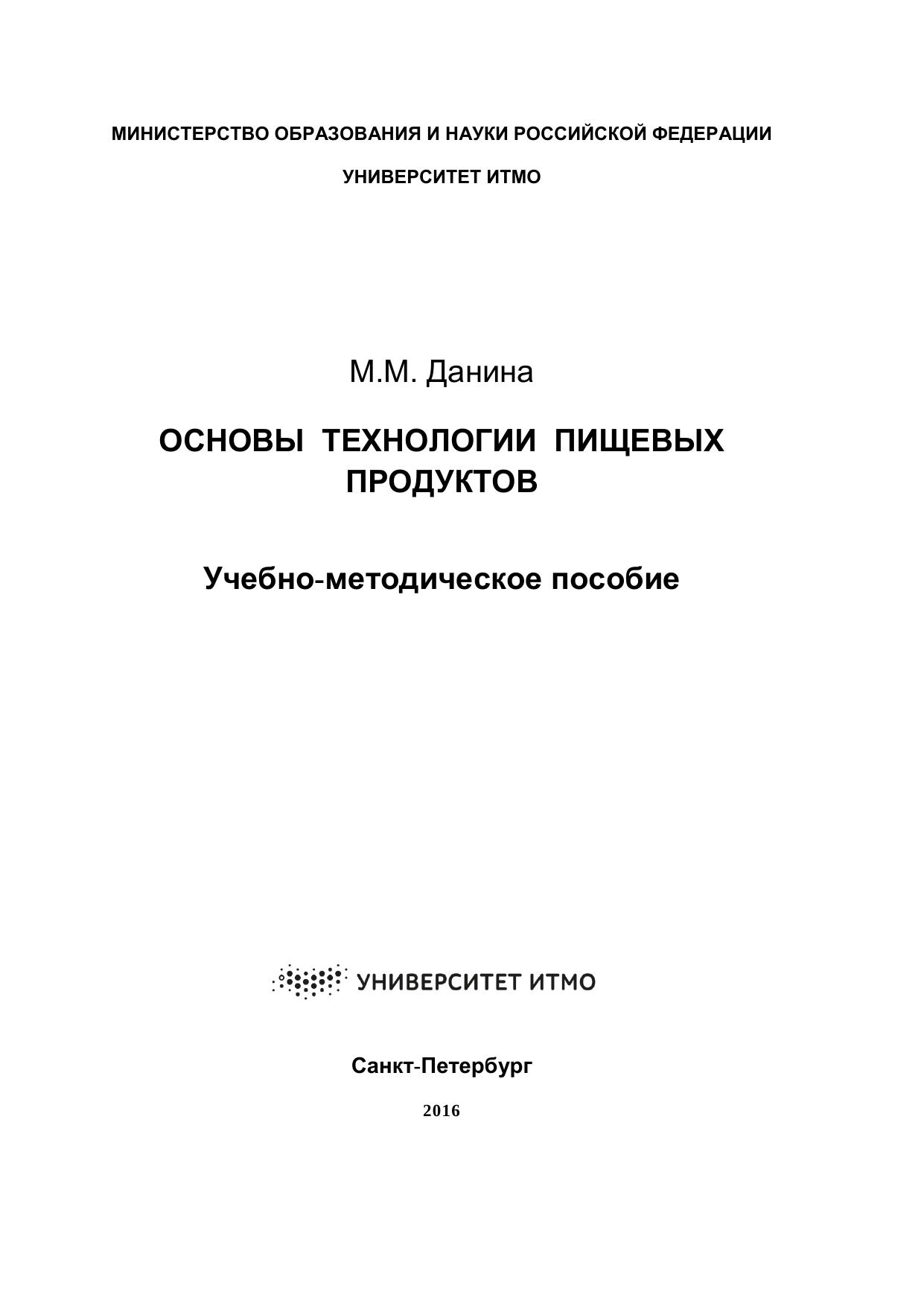 Основы технологии пищевых продуктов: учебно-методическое пособие