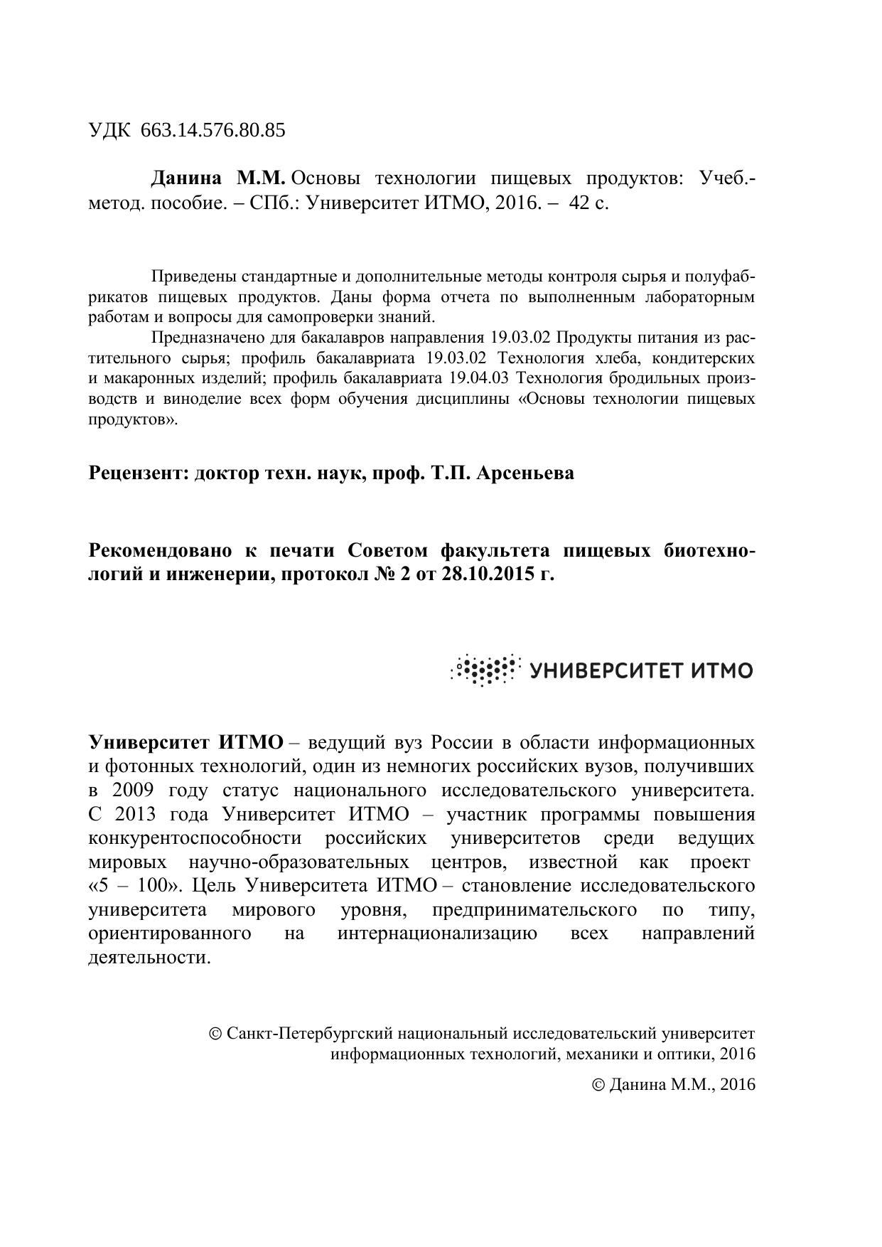 Предназначено для бакалавров направления 19.03.02 Продукты питания из растительного сырья; профиль бакалавриата 19.03.02 Технология хлеба, кондитерских и макаронных изделий; профиль бакалавриата 19.04.03 Технология бродильных производств и виноделие всех форм обучения дисциплины «Основы технологии пищевых продуктов».
