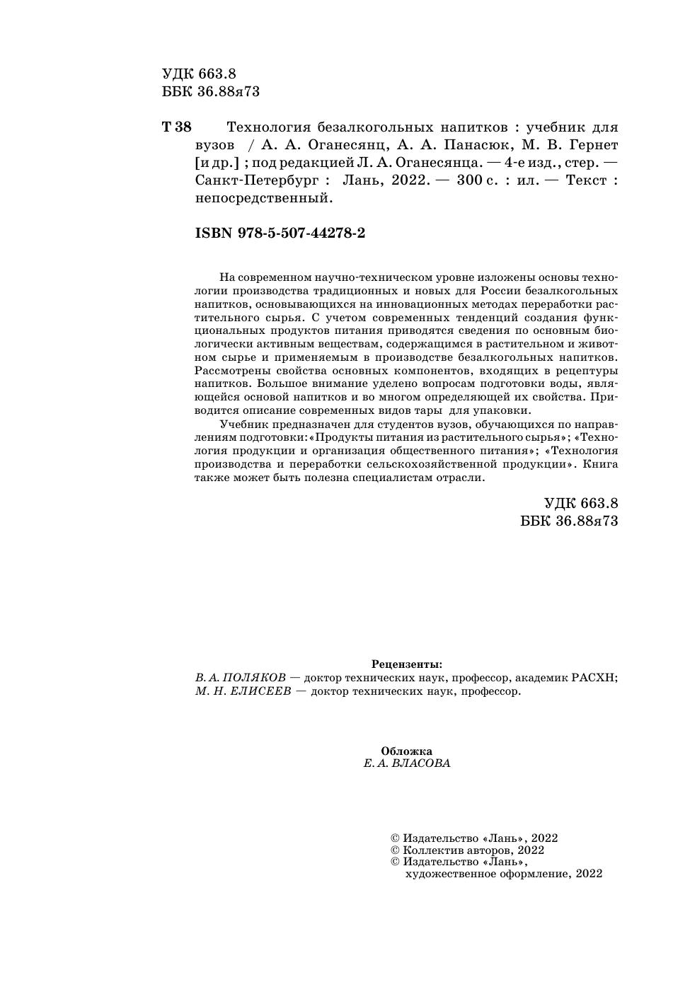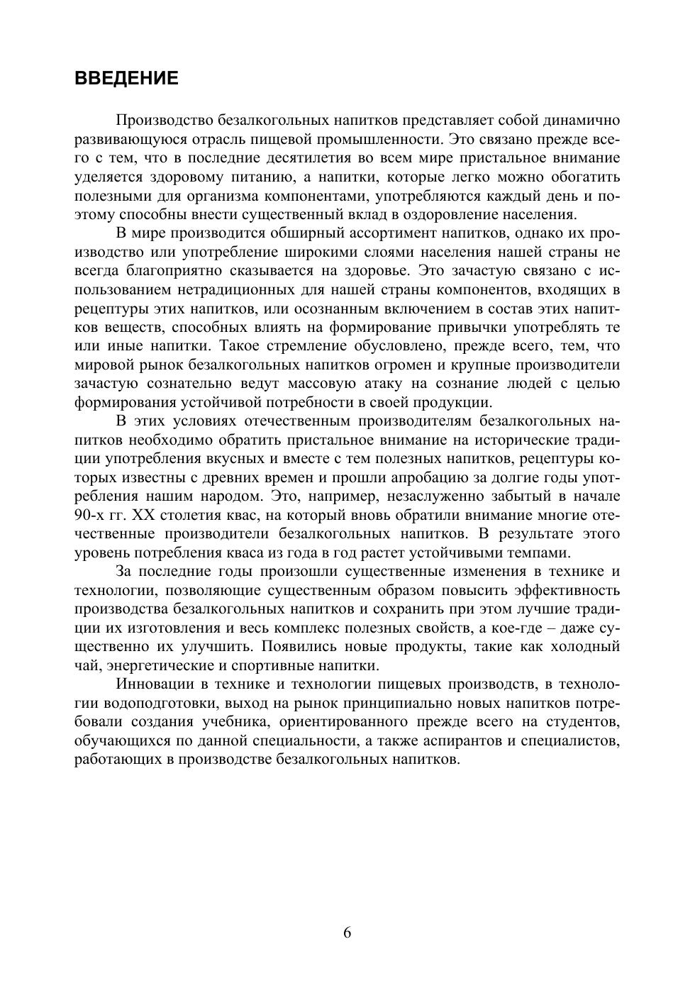 На современном научно-техническом уровне изложены основы технологии производства традиционных и новых для России безалкогольных напитков, основывающихся на инновационных методах переработки растительного сырья. С учетом современных тенденций создания функциональных продуктов питания приводятся сведения по основным биологически активным веществам, содержащимся в растительном и животном сырье и применяемым в производстве безалкогольных напитков. Рассмотрены свойства основных компонентов, входящих в рецептуры напитков. Большое внимание уделено вопросам подготовки воды, являющейся основой напитков и во многом определяющей их свойства. Приводится описание современных видов тары для упаковки.