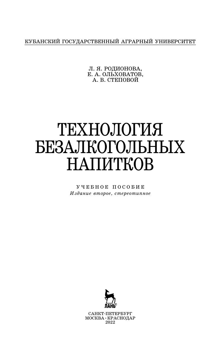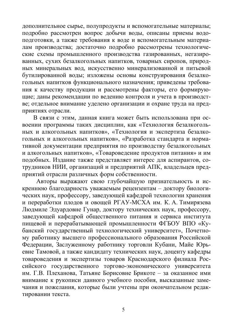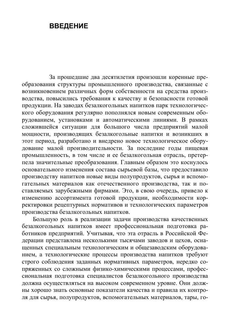 Учебное пособие подготовлено в соответствии с современными достижениями науки, направленными на совершенствование технологии безалкогольных напитков, организацию их производства на научной основе и проведение его контроля с целью обеспечения высокого качества и безопасности вырабатываемой продукции. Книга имеет своей целью формирование технологического мышления и углубление знаний, составляющих теоретическую основу для изучения совре-менной технологии производства безалкогольных напитков при использовании новых видов сырья, полупродуктов и вспомогательных материалов, в том числе обладающих лечебными и профилактическими свойствами. Учебное пособие предназначено для подготовки бакалавров по направлениям «Продукты питания из растительного сырья», «Стандартизация и метрология», «Технология производства и переработки сельскохозяйственной продукции». Издание также представляет интерес для аспирантов, сотрудников НИИ, организа-ций и предприятий АПК, владельцев предприятий отрасли различных форм собственности.