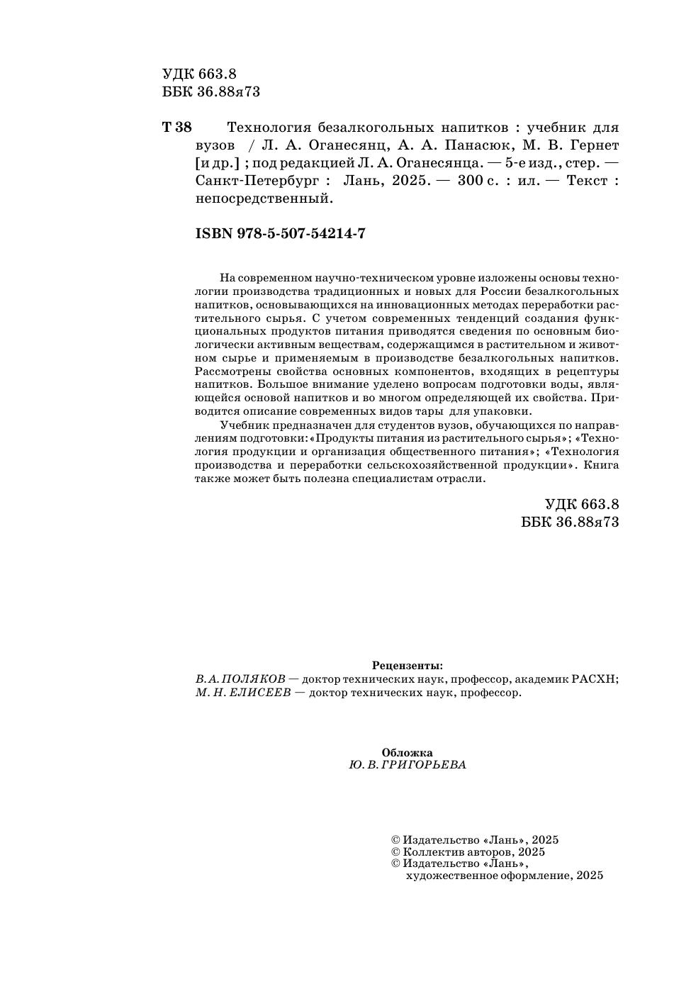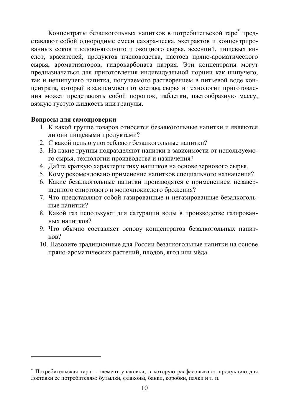 На современном научно-техническом уровне изложены основы технологии производства традиционных и новых для России безалкогольных напитков, основывающихся на инновационных методах переработки растительного сырья. С учетом современных тенденций создания функциональных продуктов питания приводятся сведения по основным биологически активным веществам, содержащимся в растительном и животном сырье и применяемым в производстве безалкогольных напитков. Рассмотрены свойства основных компонентов, входящих в рецептуры напитков. Большое внимание уделено вопросам подготовки воды, являющейся основой напитков и во многом определяющей их свойства. Приводится описание современных видов тары для упаковки. Учебник предназначен для студентов вузов , обучающихся по направлениям подготовки :«Продукты питания из растительного сырья», «Технология продукции и организация общественного питания», «Технология производства и переработки сельскохозяйственной продукции». Книга также может быть полезна специалистам отрасли.