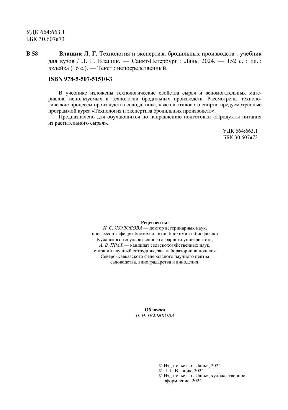 В учебнике изложены технологические свойства сырья и вспомогательных материалов, используемых в технологии бродильных производств. Рассмотрены технологические процессы производства солода, пива, кваса и этилового спирта, предусмотренные программой курса «Технология и экспертиза бродильных производств». Предназначено для обучающихся по направлению подготовки «Продукты питания из растительного сырья».