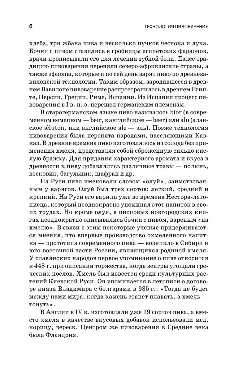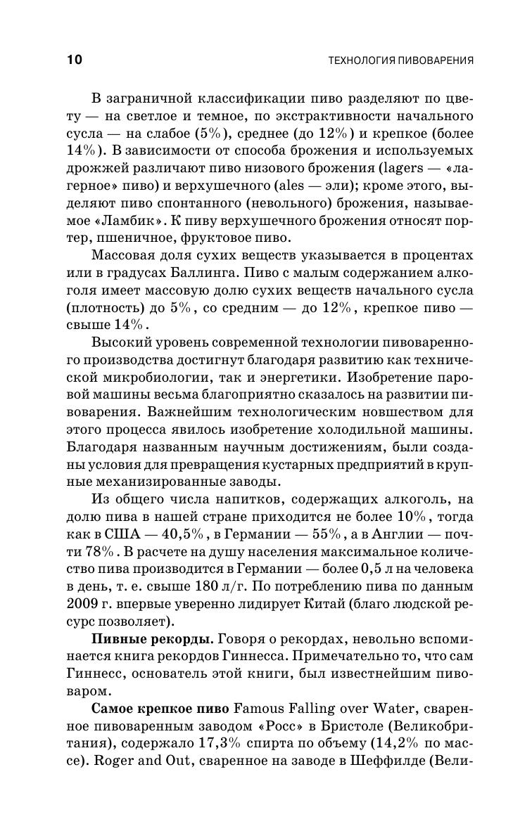 В данном пособии рассмотрено основное и вспомогательное сырье, используемое в пивоварении, а также современные технологии приготовления ячменного солода, охмеленного сусла, процессы брожения и созревания пива, фильтрации, стабилизации и розлива пива. Описаны устройство и принцип действия используемого технологического оборудования, а также методы химико-технологического контроля качества сырья и готовой продукции. Изложены требования, предъявляемые к сырью для приготовления солода и пива, технологической воде, таре, вспомогательным материалам, к производственной санитарии и безопасным приемам труда. Рассмотрено строение пивных дрожжей и получение чистых культур дрожжей, требования, предъявляемые к пивным дрожжам и составу сусла при брожении. Описаны бактерии-вредители пивоваренного процесса и санитария пивоваренного предприятия. Даны физико-химические и органолептические характеристики готового пива. Рассмотрена технология пивоваренного маркетинга и приводится алгоритм проектирования пивоваренного предприятия. Пособие предназначено для студентов вузов и инженерно-технических работников пивоваренных предприятий.