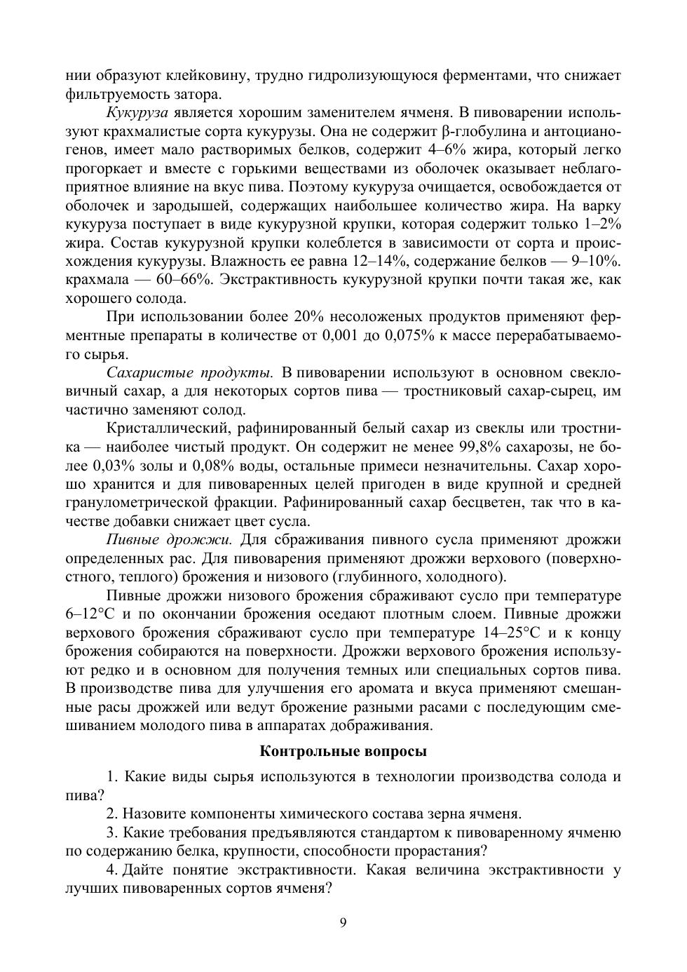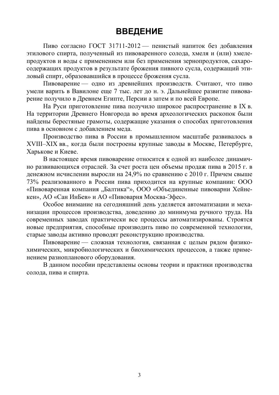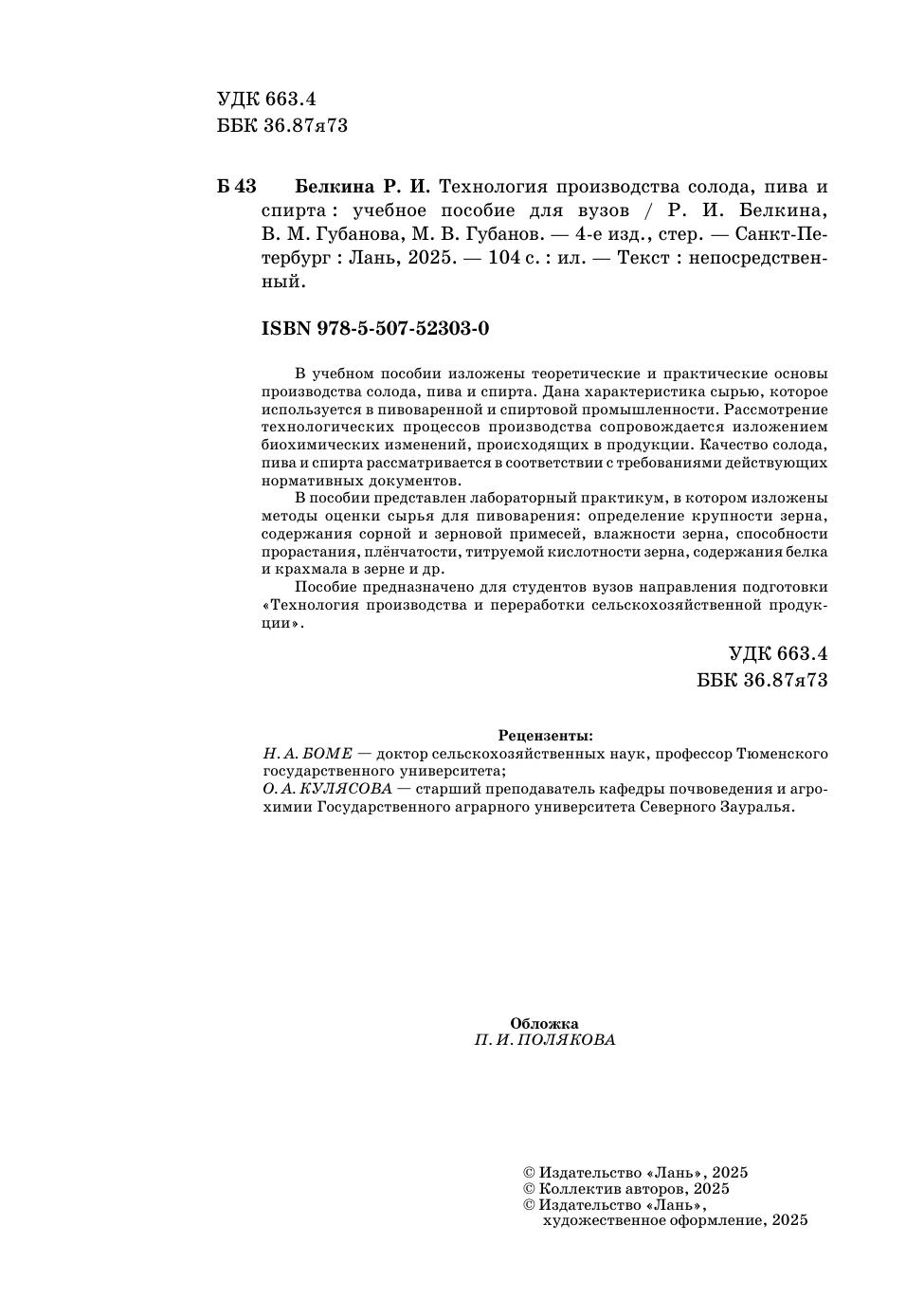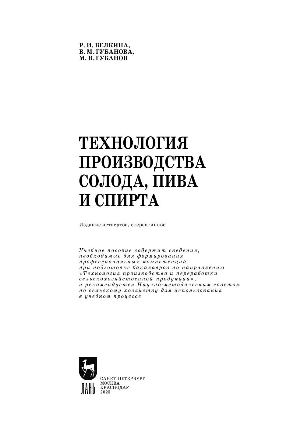 В учебном пособии изложены теоретические и практические основы производства солода, пива и спирта. Дана характеристика сырью, которое используется в пивоваренной и спиртовой промышленности. Рассмотрение технологических процессов производства сопровождается изложением биохимических изменений, происходящих в продукции. Качество солода, пива и спирта рассматривается в соответствии с требованиями действующих нормативных документов. В пособии представлен лабораторный практикум, в котором изложены методы оценки сырья для пивоварения: определение крупности зерна, содержания сорной и зерновой примесей, влажности зерна, способности прорастания, плёнчатости, титруемой кислотности зерна, содержания белка и крахмала в зерне и др. Пособие предназначено для студентов вузов направления подготовки «Технология производства и переработки сельскохозяйственной продукции».