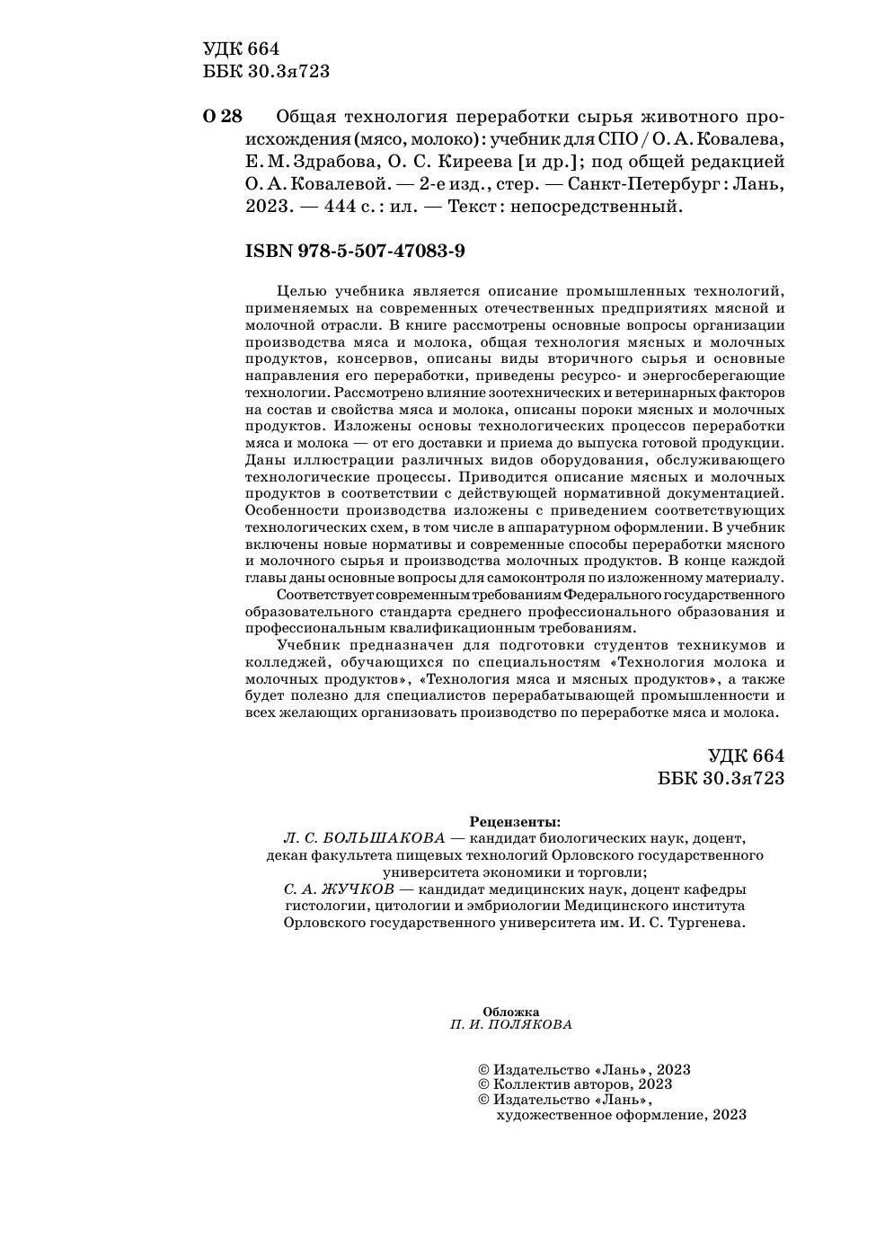 Целью учебника является описание промышленных технологий, применяемых на современных отечественных предприятиях мясной и молочной отрасли. В книге рассмотрены основные вопросы организации производства мяса и молока, общая технология мясных и молочных продуктов, консервов, описаны виды вторичного сырья и основные направления его переработки, приведены ресурсо- и энергосберегающие технологии. Рассмотрено влияние зоотехнических и ветеринарных факторов на состав и свойства мяса и молока, описаны пороки мясных и молочных продуктов. Изложены основы технологических процессов переработки мяса и молока — от его доставки и приема до выпуска готовой продукции. Даны иллюстрации различных видов оборудования, обслуживающего технологические процессы. Приводится описание мясных и молочных продуктов в соответствии с действующей нормативной документацией. Особенности производства изложены с приведением соответствующих технологических схем, в том числе в аппаратурном оформлении. В учебник включены новые нормативы и современные способы переработки мясного и молочного сырья и производства молочных продуктов. В конце каждой главы даны основные вопросы для самоконтроля по изложенному материалу. Соответствует современным требованиям Федерального государственного образовательного стандарта среднего профессионального образования и профессиональным квалификационным требованиям. Учебник предназначен для подготовки студентов техникумов и колледжей, обучающихся по специальности "Технология продуктов питания животного происхождения", а также будет полезно для специалистов перерабатывающей промышленности и всех желающих организовать производство по переработке мяса и молока.