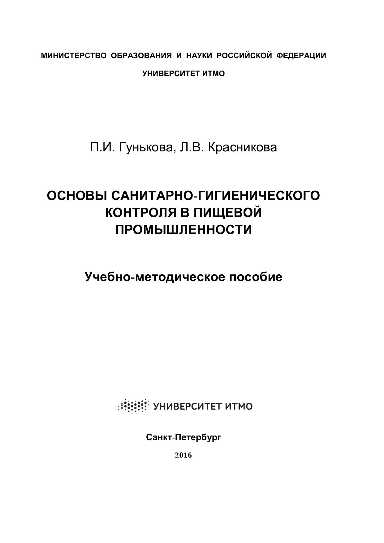 Основы санитарно-гигиенического контроля в пищевой промышленности: учебно-методическое пособие