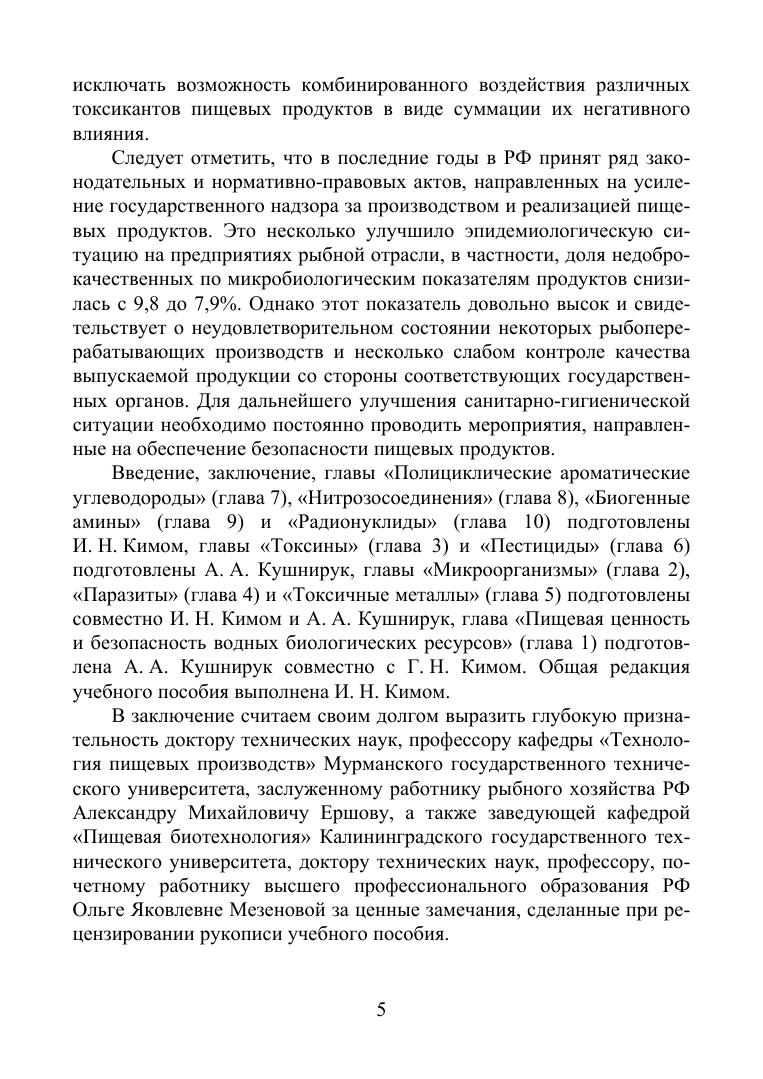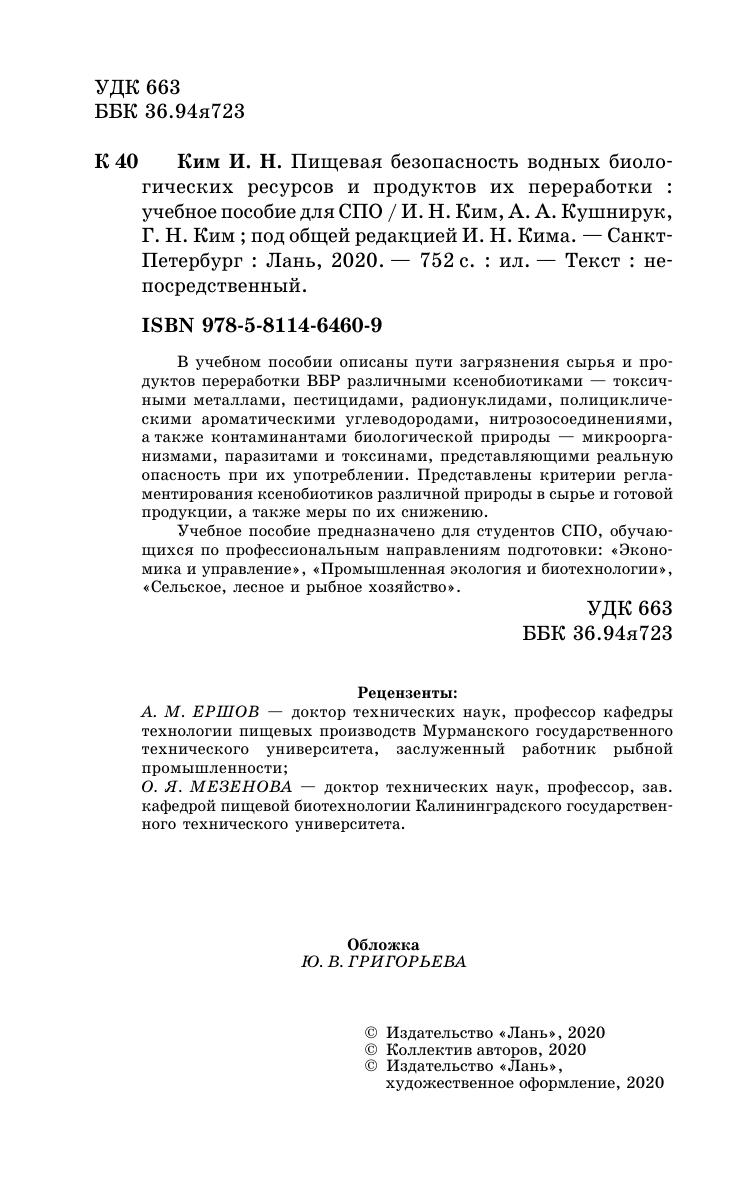 В учебном пособии описаны пути загрязнения сырья и продуктов переработки ВБР различными ксенобиотиками — токсичными металлами, пестицидами, радионуклидами, полициклическими ароматическими углеводородами, нитрозосоединениями, а также контаминантами биологической природы — микроорганизмами, паразитами и токсинами, представляющими реальную опасность при их употреблении. Представлены критерии регламентирования ксенобиотиков различной природы в сырье и готовой продукции, а также меры по их снижению.