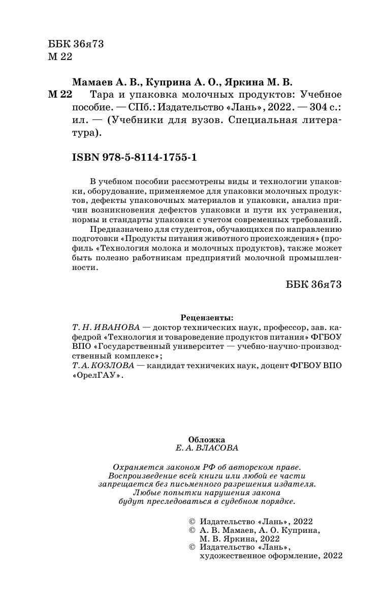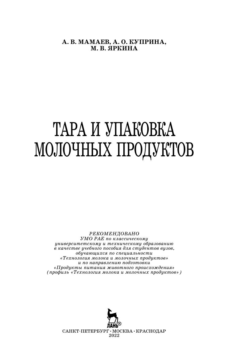 Представлены лабораторные работы по дисциплине тара и упаковка пищевых продуктов. Учебное пособие предназначено для студентов, обучающихся по специальности «Технология молока и молочных продуктов» и направлению подготовки бакалавров «Продукты питания животного происхождения» по профилю «Технология молока и молочных продуктови специалистов.