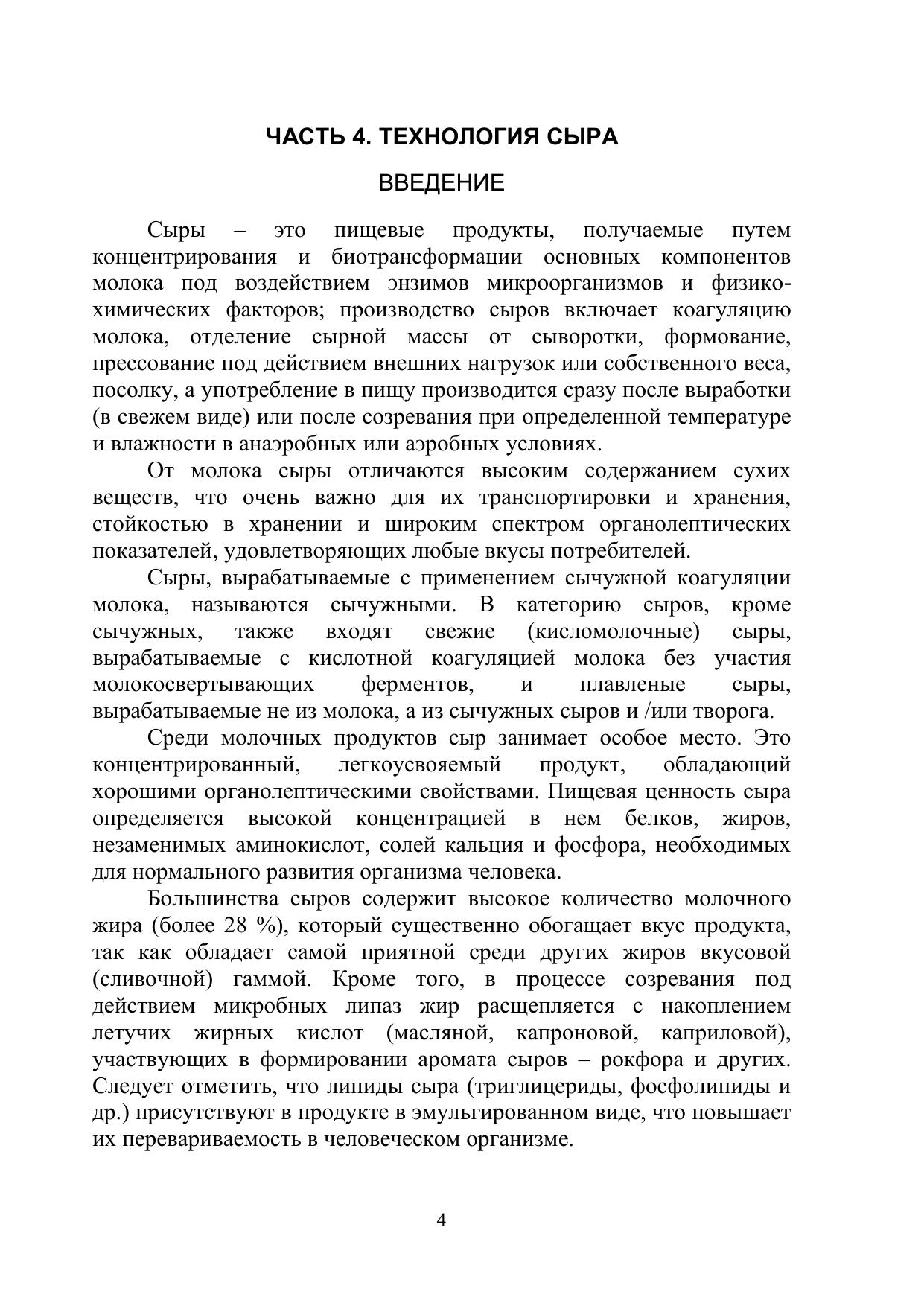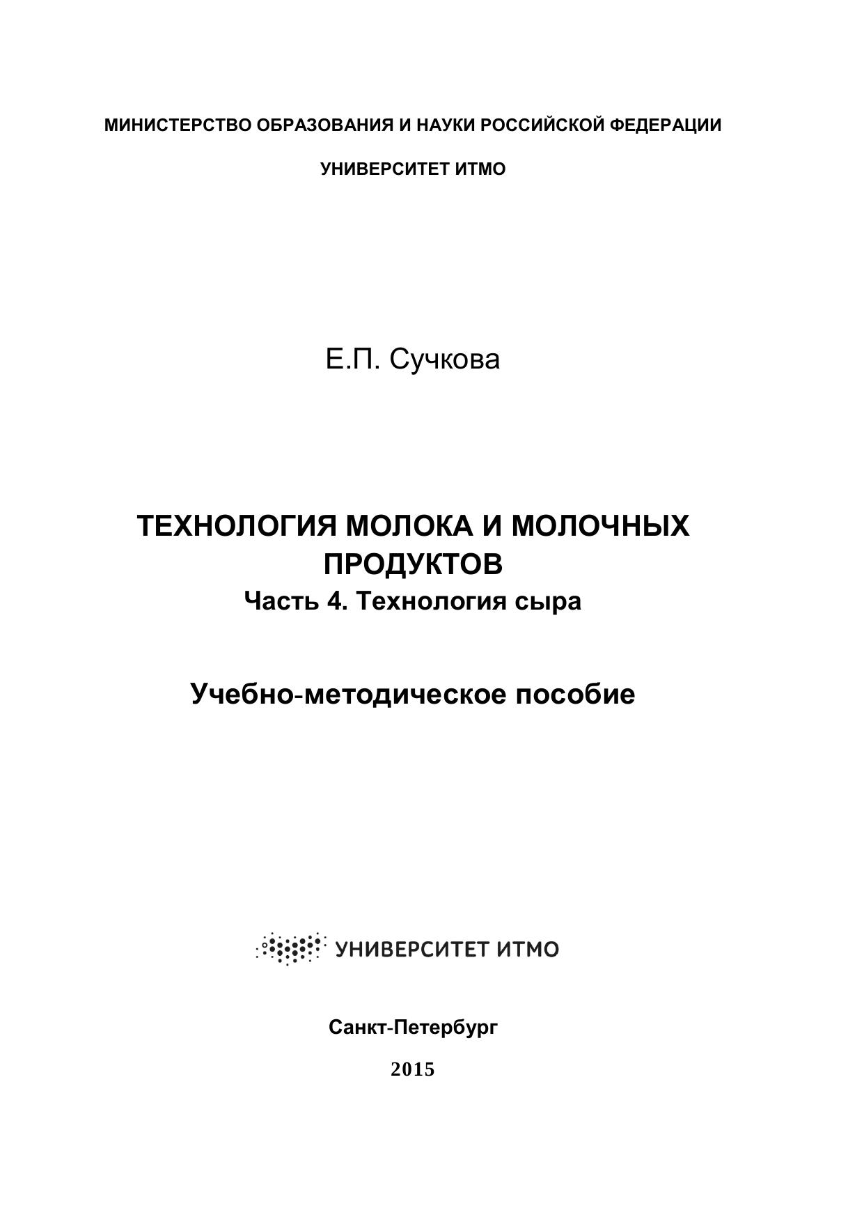 Технология молока и молочных продуктов. Часть 4. Технология сыра: учебно-методическое пособие