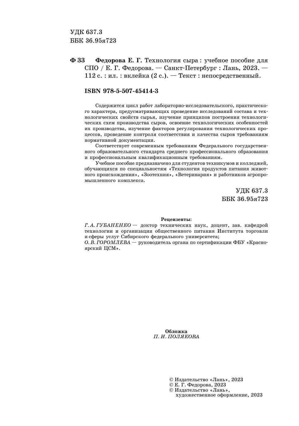 Содержится цикл работ лабораторно-исследовательского, практического характера, предусматривающих проведение исследований состава и технологических свойств сырья, изучение принципов построения технологических схем производства сыров, освоение технологических особенностей их производства, изучение факторов регулирования технологических процессов, проведение контроля соответствия и качества сыров требованиям нормативной документации. Соответствует современным требованиям Федерального государственного образовательного стандарта среднего профессионального образования и профессиональным квалификационным требованиям. Учебное пособие предназначено для студентов техникумов и колледжей, обучающихся по специальностям «Технология продуктов питания животного происхождения», «Зоотехния», «Ветеринария» и работников агропромышленного комплекса.