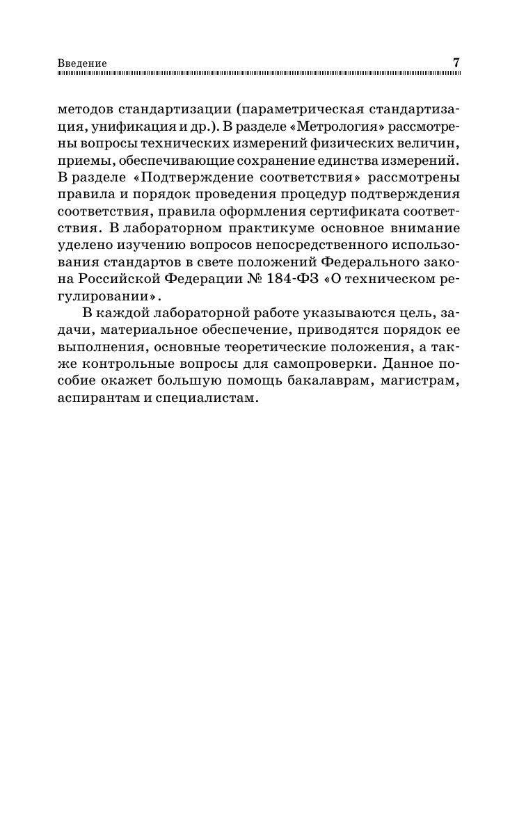 В учебном пособии рассмотрен комплекс практических задач по основным разделам дисциплины «Стандартизация, метрология, подтверждение соответствия» с изложением необходимого теоретического материала и методических указаний к выполнению лабораторных работ. Предназначено для закрепления теоретических основ и приобретения практических навыков работы в области технического регулирования, стандартизации, метрологии, подтверждения соответствия. Пособие предназначено для подготовки бакалавров по направлению «Товароведение», «Торговое дело» и других экономических и технических направлений подготовки. Может быть полезно магистрам, аспирантам и специалистам, занимающимся вопросами технического регулирования и подтверждения соответствия.