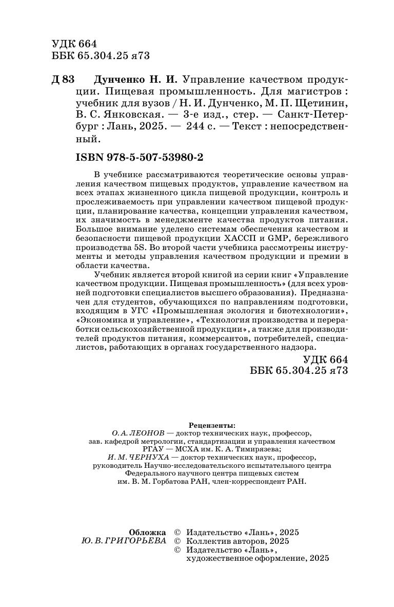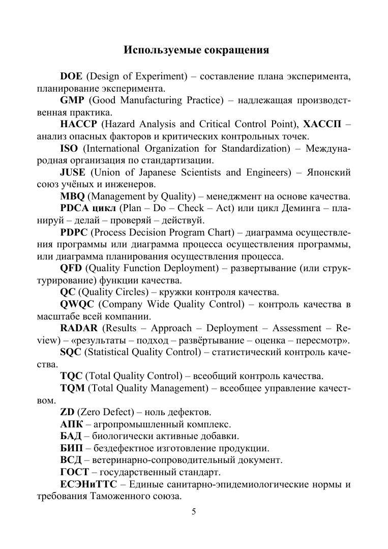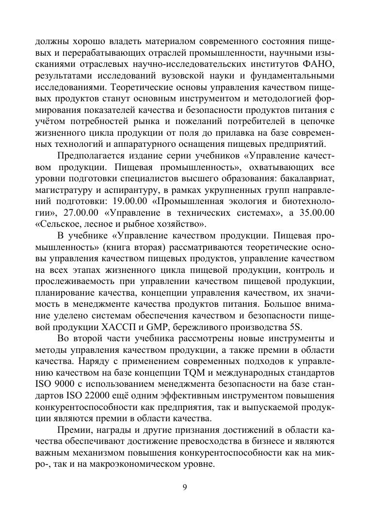 В учебнике рассматриваются теоретические основы управления качеством пищевых продуктов, управление качеством на всех этапах жизненного цикла пищевой продукции, контроль и прослеживаемость при управлении качеством пищевой продукции, планирование качества, концепции управления качеством, их значимость в менеджменте качества продуктов питания. Большое внимание уделено системам обеспечения качеством и безопасности пищевой продукции ХАССП и GMP, бережливого производства 5S. Во второй части учебника рассмотрены инструменты и методы управления качеством продукции и премии в области качества. Учебник является второй книгой из серии книг «Управление качеством продукции. Пищевая промышленность» (для всех уровней подготовки специалистов высшего образования: бакалавриат, магистратура и аспирантура). Предназначен для студентов магистратуры, обучающихся по направлениям подготовки, входящим в УГС «Промышленная экология и биотехнологии», «Экономика и управление», «Технология производства и переработки сельскохозяйственной продукции», а также для производителей продуктов питания, коммерсантов, потребителей, специалистов, работающих в органах государственного надзора.