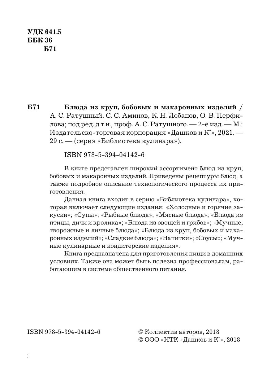 В книге представлен широкий ассортимент блюд из круп, бобовых и макаронных изделий. Приведены рецептуры блюд, а также подробное описание технологического процесса их приготовления. Данная книга входит в серию «Библиотека кулинара», которая включает следующие издания: «Холодные и горячие закуски», «Супы», «Рыбные блюда», «Мясные блюда», «Блюда из птицы, дичи и кролика», «Блюда из овощей и грибов», «Мучные, творожные и яичные блюда», «Блюда из круп, бобовых и макаронных изделий», «Сладкие блюда», «Напитки», «Соусы», «Мучные кулинарные и кондитерские изделия». Книга предназначена для приготовления пищи в домашних условиях. Также она может быть полезна профессионалам, работающим в системе общественного питания.