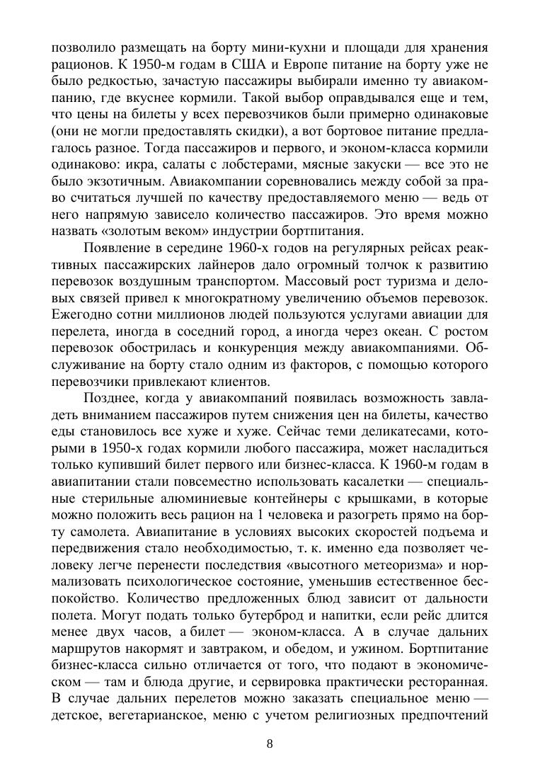 В книге рассмотрены история развития и современное состояние бортового питания. Достаточно полно представлены санитарно-гигиенические требования к размещению, устройству, оснащению предприятий бортового питания, технологический процесс производства бортового питания, обслуживание пассажиров воздушных судов рационами бортового питания. Особое внимание уделено специальным видам питания: вегетарианскому, религиозному, детскому, диетическому. Соответствует современным требованиям Федерального государственного образовательного стандарта среднего профессионального образования и профессиональным квалификационным требованиям. Учебное пособие предназначено для студентов колледжей и техникумов, обучающихся по специальностям «Технология продукции общественного питания», «Сервис на транспорте», «Организация перевозок и управление на транспорте», «Туризм». Пособие может оказаться полезным широкому кругу читателей, путешествующих воздушным транспортом.