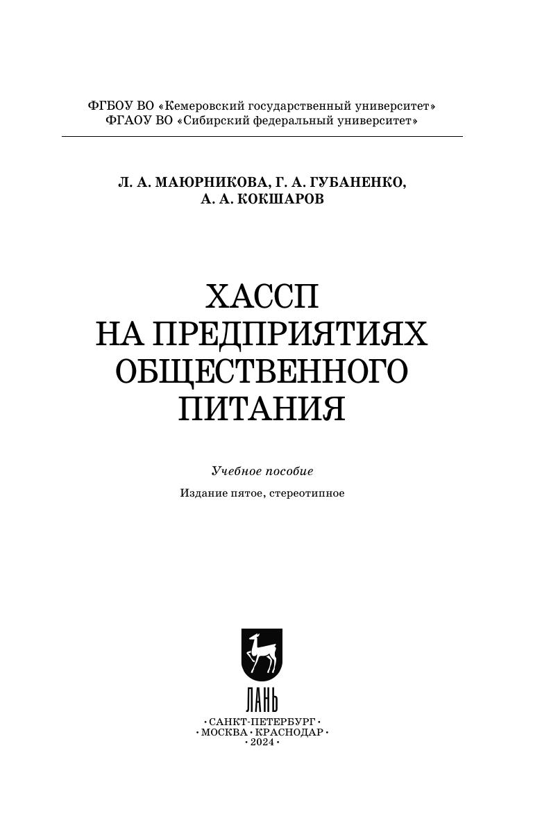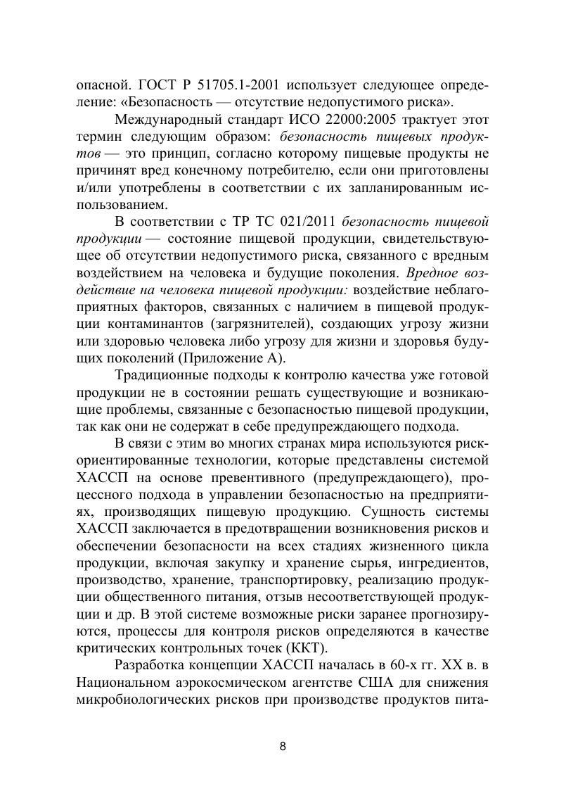 Учебное пособие предназначено для подготовки специалистов в области обеспечения качества и безопасности продукции производимой и реализуемой на предприятиях питания. Учебное пособие специализировано для студентов бакалавриата и магистратуры техники и технологий, обучающихся по направлению «Технология продукции и организация общественного питания» всех форм обучения. Рекомендуется для учебных курсов студентов «ХАССП на предприятиях общественного питания», «Управление качеством», «Экспертиза продуктов на этапе входного контроля предприятий питания» и других дисциплин учебного процесса, а также для самостоятельной работы студентов, аспирантов и молодых ученых. Учебное пособие представляет интерес для работников предприятий общественного питания, интересующихся вопросами теории и практики обеспечения качества и безопасности продукции путем внедрения системы ХАССП.