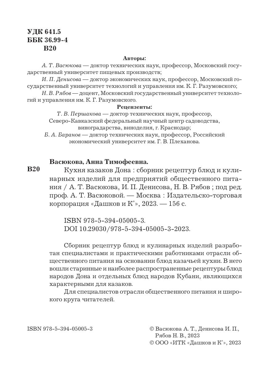 Сборник рецептур блюд и кулинарных изделий разработан специалистами и практическими работниками отрасли общественного питания на основании блюд казачьей кухни. В него вошли старинные и наиболее распространенные рецептуры блюд народов Дона и отдельных блюд народов Кубани, являющихся характерными для казаков.