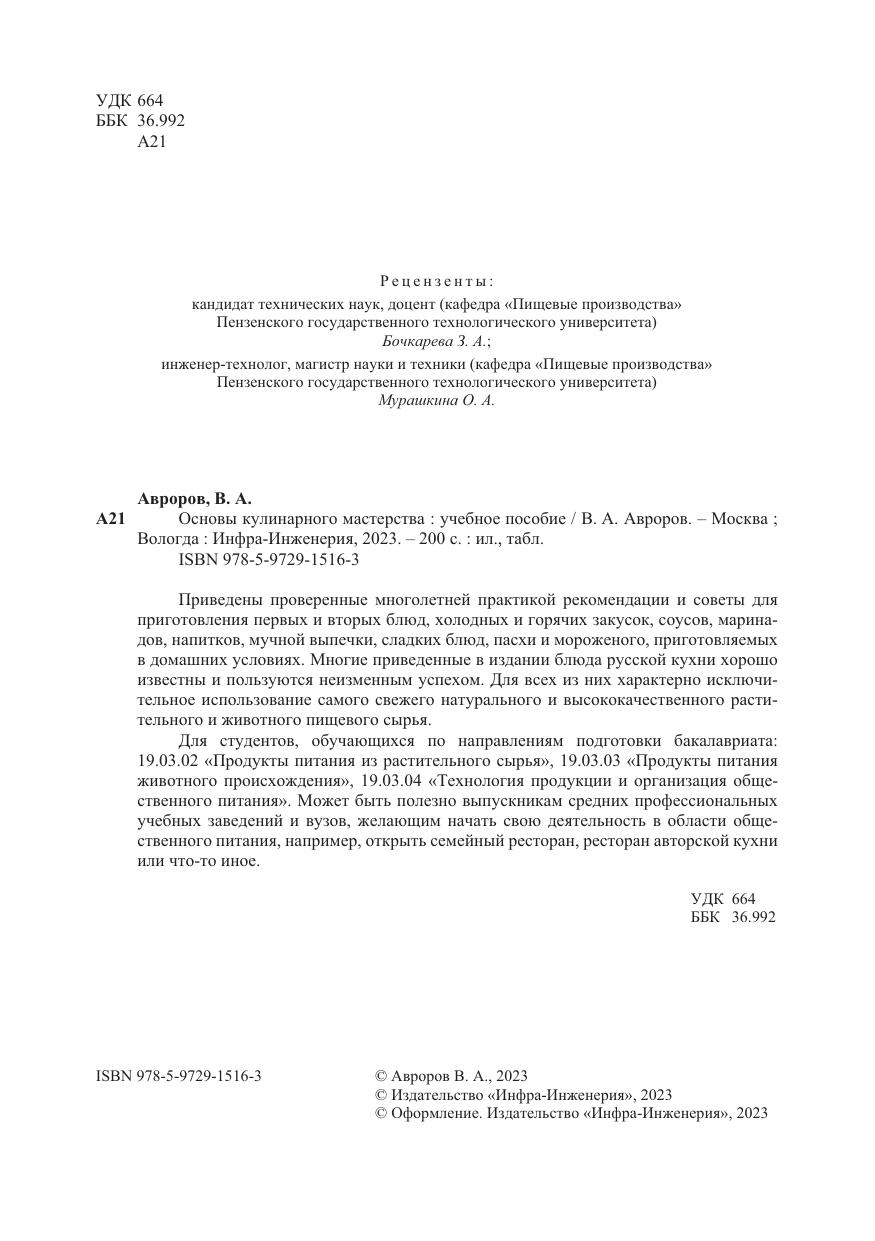 Для студентов, обучающихся по направлениям подготовки бакалавриата: 19.03.02 «Продукты питания из растительного сырья», 19.03.03 «Продукты питания животного происхождения», 19.03.04 «Технология продукции и организация общественного питания». Может быть полезно выпускникам средних профессиональных учебных заведений и вузов, желающим начать свою деятельность в области общественного питания, например, открыть семейный ресторан, ресторан авторской кухни или что-то иное.