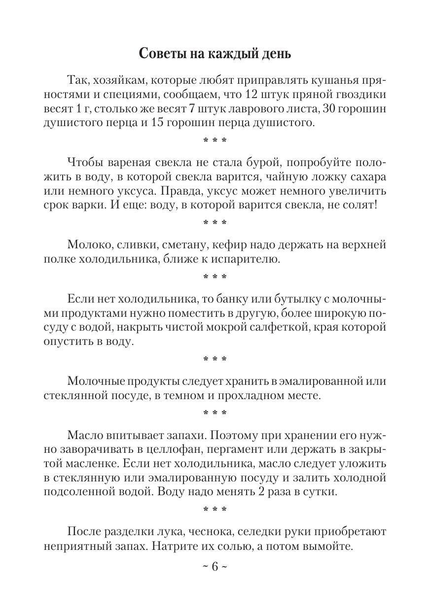 В книге Людмилы Евгеньевны Буровой (1928–2012) — представителя потомственной династии преподавателей во многих поколениях, в какой-то мере обобщен накопленный жизненный опыт и даются практические рекомендации для молодых хозяек и не только. Эта книга станет незаменимой помощницей во всех бытовых вопросах. Она содержит советы о том, как правильно сервировать стол, приготовить блюда, применяя различные кулинарные тонкости, из картофеля, овощей, мяса, рыбы, грибов и ягод, всевозможные кондитерские изделия, подобрать методы домашнего консервирования, а также множество натуральных рецептов и советов прошлого столетия, передающихся из поколения в поколение.