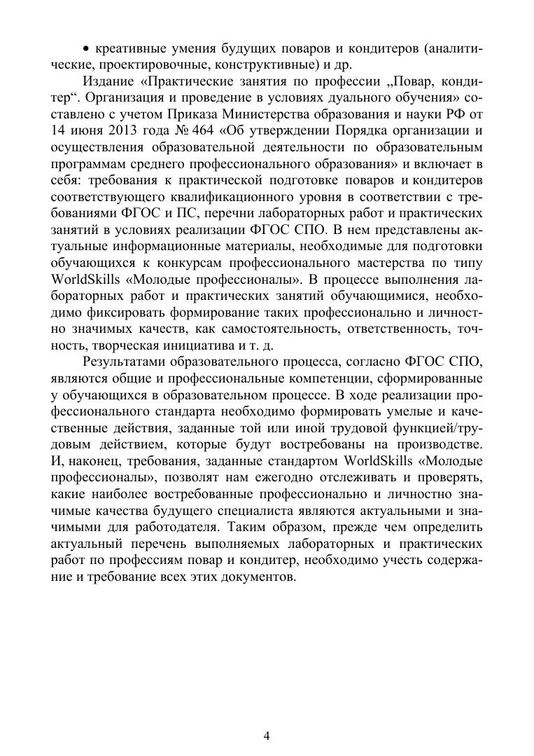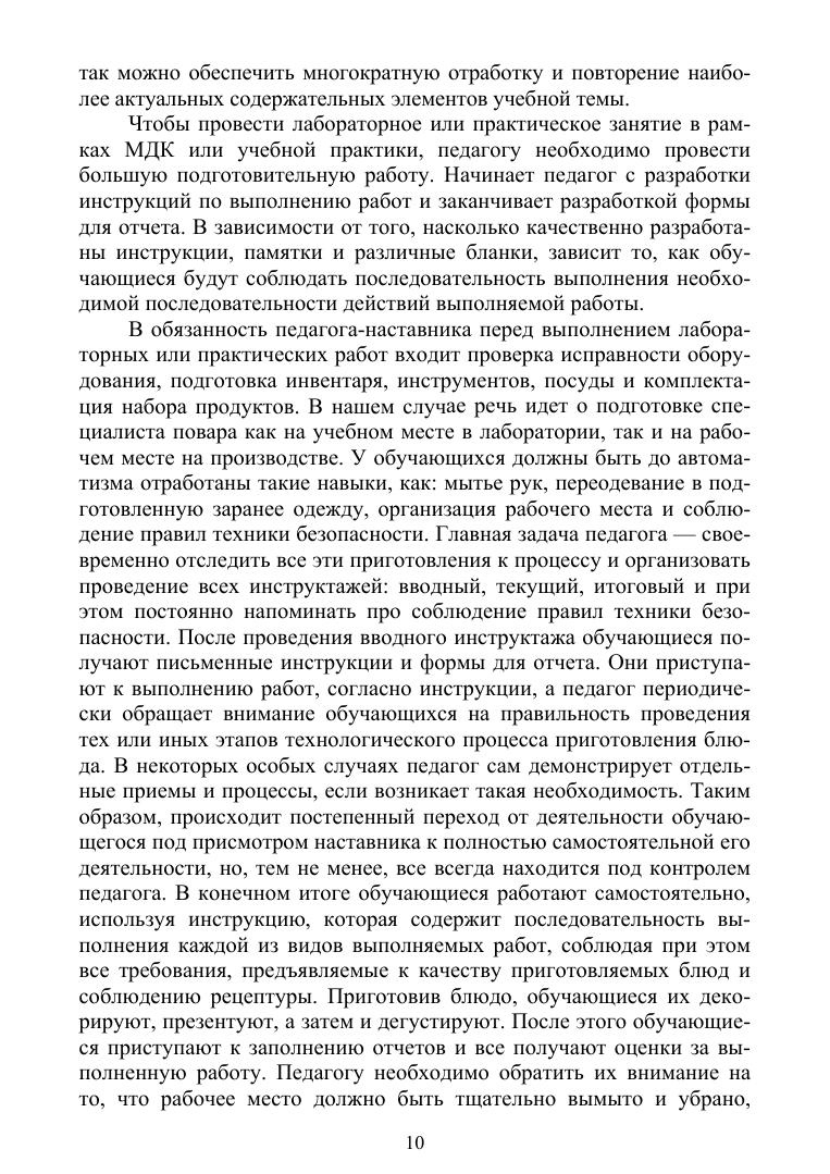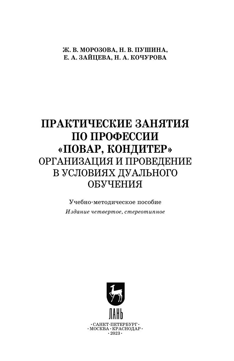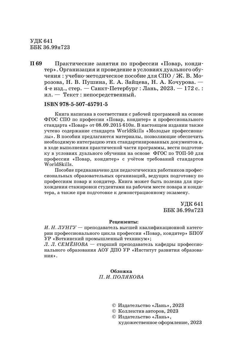 Книга написана в соответствии с рабочей программой на основе ФГОС СПО по профессии «Повар, кондитер» и профессионального стандарта «Повар» от 08.09.2015 610н. В настоящем издании также учтено содержание стандарта WorldSkills «Молодые профессионалы». В пособии предлагаются материалы, позволяющие обеспечить необходимую интеграцию этих стандартизированных документов и, в ходе выполнения практической части программы, вести подготовку в условиях дуального обучения на основе ФГОС по ТОП-50 для профессии «Повар, кондитер» с учётом требований стандартов WorldSkills. Пособие предназначено для педагогических работников профессиональных образовательных организаций, ведущих подготовку по профессиям повар и кондитер. Книга может быть полезна для прохождения стажировки студентами на рабочем месте повара и кондитера, а также при подготовке к демонстрационному экзамену.