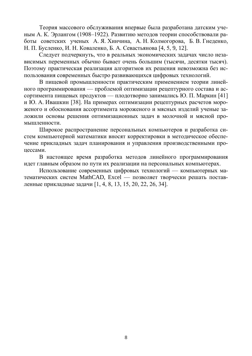 В учебном пособии рассмотрены классические задачи линейного программирования, системы массового обслуживания, статистического анализа качества продуктов питания и методологии оценки сбалансированности продуктов питания. Теоретическая часть пособия дополняется детально разобранными практическими примерами. Приводятся примеры решения прикладных задач с использованием цифровых систем — Excel, MathCAD. Соответствует современным требованиям Федерального государственного образовательного стандарта среднего профессионального образования и профессиональным квалификационным требованиям. Учебное пособие будет полезным при обучении студентов профильных колледжей и техникумов.
