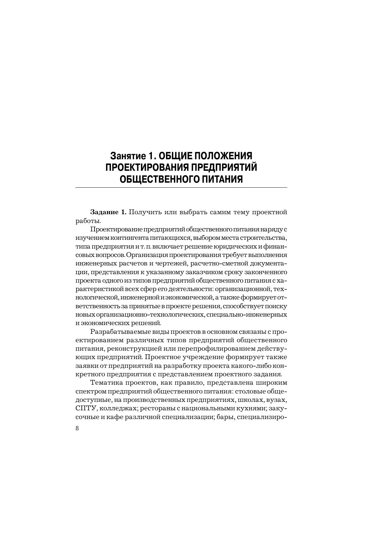 Практикум предназначен для использования при проведении практических занятий по дисциплине "Проектирование предприятий общественного питания" для студентов вузов, обучающихся по направлению подготовки "Технология продукции и организация общественного питания". Может быть рекомендован для специалистов системы общественного питания при проектировании или реконструкции предприятий общественного питания.