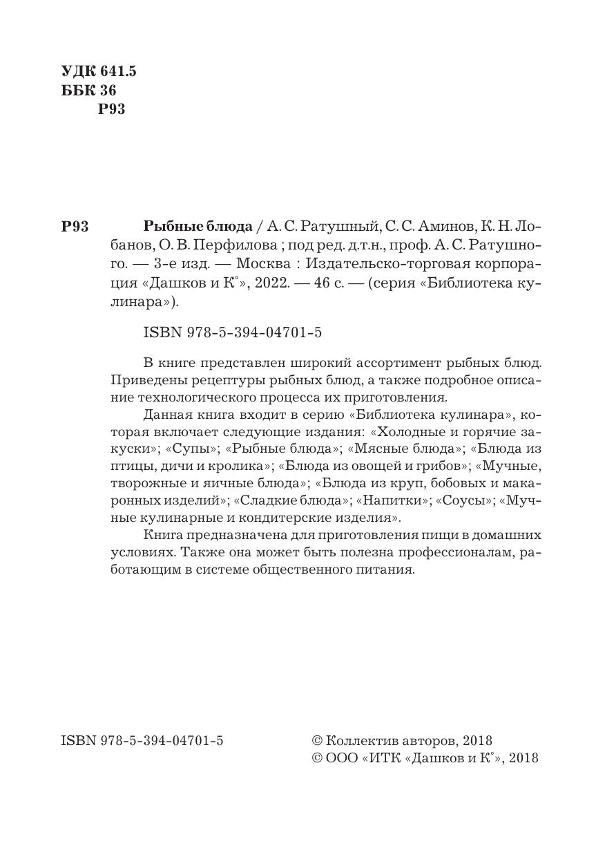 В книге представлен широкий ассортимент рыбных блюд. Приведены рецептуры рыбных блюд, а также подробное описание технологического процесса их приготовления. Данная книга входит в серию «Библиотека кулинара», которая включает следующие издания: «Холодные и горячие закуски», «Супы», «Рыбные блюда», «Мясные блюда», «Блюда из птицы, дичи и кролика», «Блюда из овощей и грибов», «Мучные, творожные и яичные блюда», «Блюда из круп, бобовых и макаронных изделий», «Сладкие блюда», «Напитки», «Соусы», «Мучные кулинарные и кондитерские изделия». Книга предназначена для приготовления пищи в домашних условиях. Также она может быть полезна профессионалам, работающим в системе общественного питания.