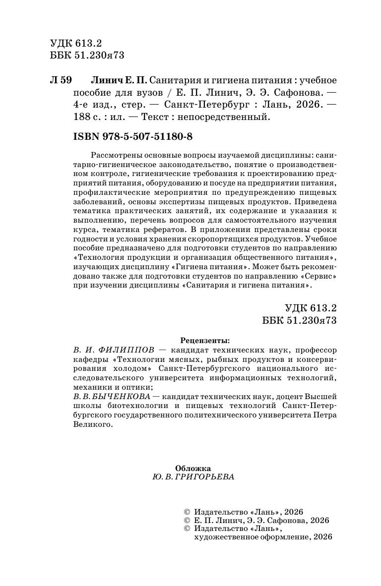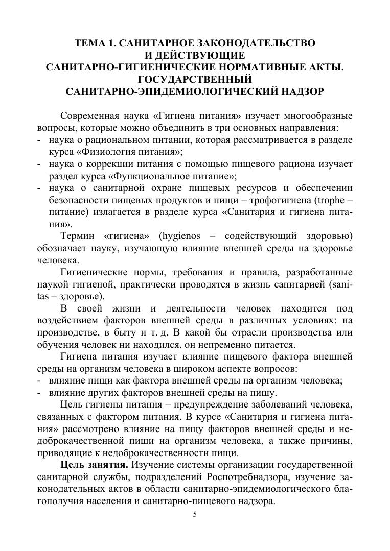 Рассмотрены основные вопросы изучаемой дисциплины: санитарно-гигиеническое законодательство, понятие о производственном контроле, гигиенические требования к проектированию предприятий питания, оборудованию и посуде на предприятии питания, профилактические мероприятия по предупреждению пищевых заболеваний, основы экспертизы пищевых продуктов. Приведена тематика практических занятий, их содержание и указания к выполнению, перечень вопросов для самостоятельного изучения курса, тематика рефератов. В приложении представлены сроки годности и условия хранения скоропортящихся продуктов. Учебное пособие предназначено для подготовки студентов по направлению «Технология продукции и организация общественного питания», изучающих дисциплину «Гигиена питания». Может быть рекомендовано также для подготовки студентов по направлению «Сервис» при изучении дисциплины «Санитария и гигиена питания».